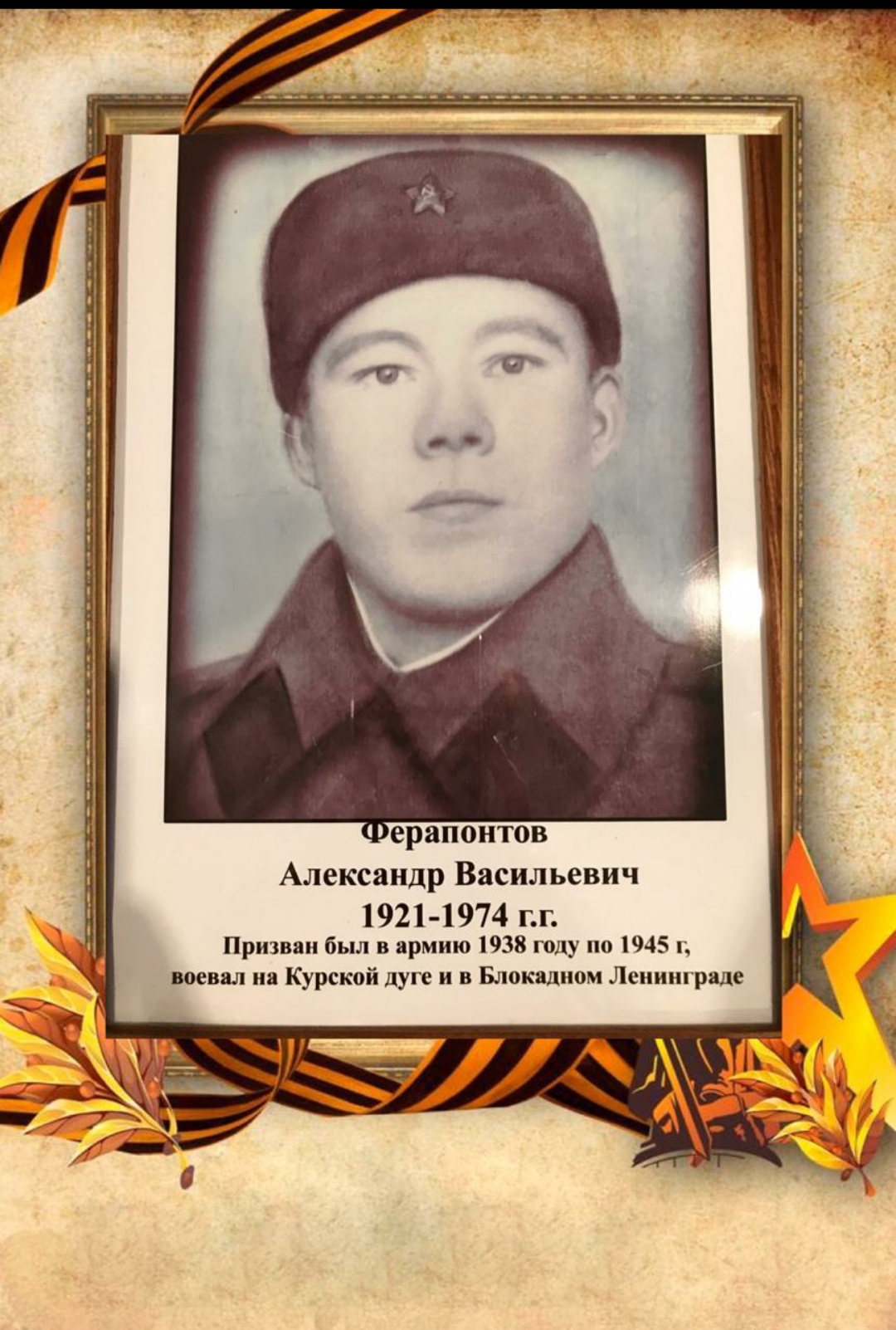 ФЕРАПОНТОВ АЛЕКСАНДР ВАСИЛЬЕВИЧ Район: Набережные ЧелныФерапонтов Александр Васильевич Фронтовики Опубликовано 6 мая, 2020 - 19:45 пользователем Полина Габова