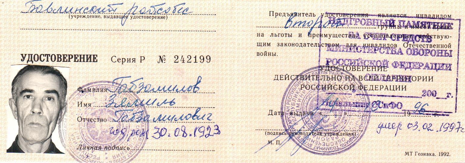 ГАБЗАМИЛОВ ЗЯМИЛЬ ГАБЗАМИЛОВИЧ Район: БавлинскийПрикреплённые изображения: Фронтовики Опубликовано 8 января, 2021 - 11:14 пользователем Петрова Снежана