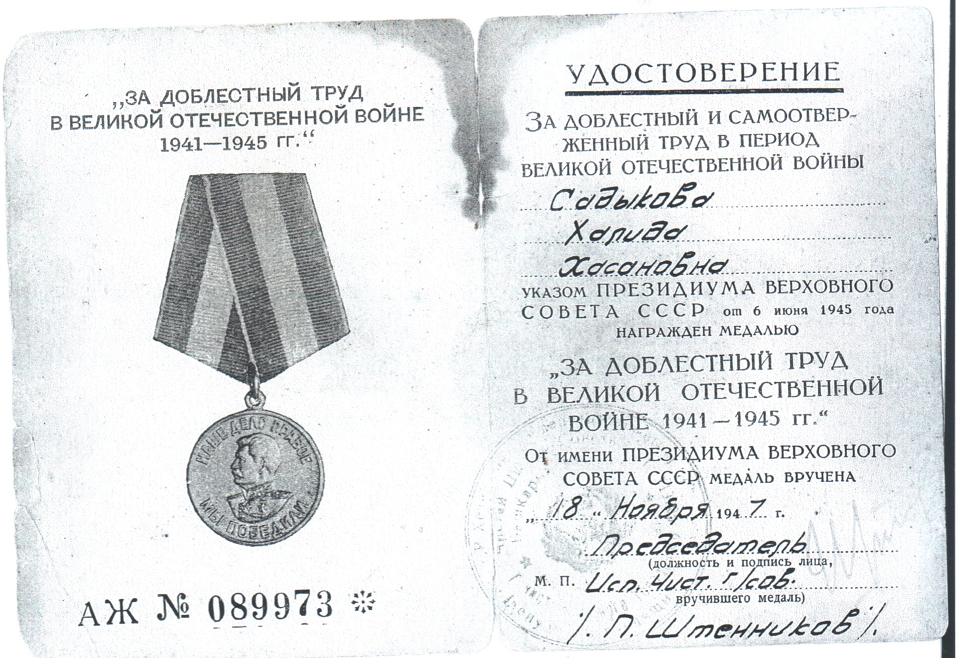 ГАЛИЕВА (САДЫКОВА) ХАЛИДА ХАСАНОВНА