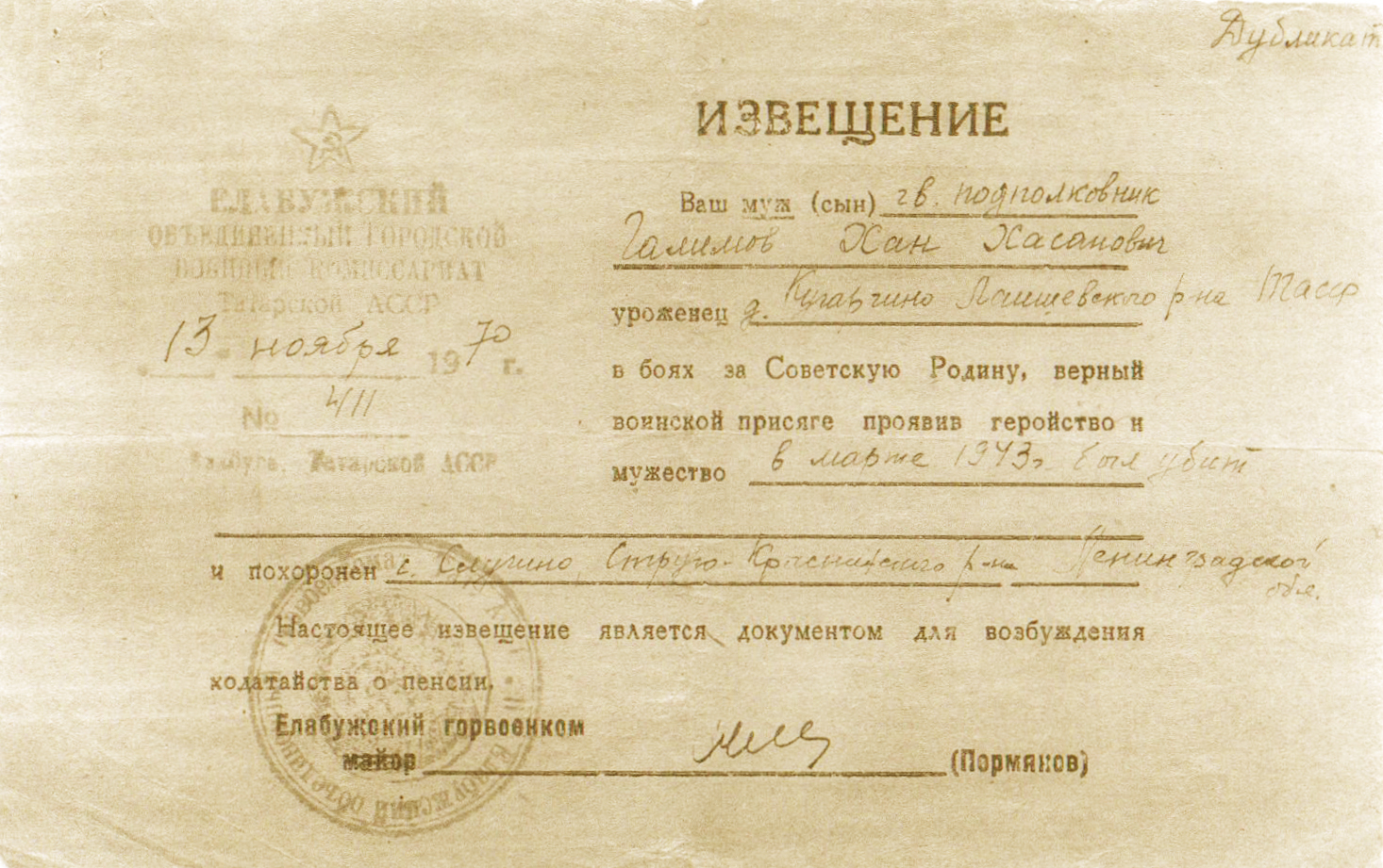 1902-1943 гг., уроженец с. Кугарчино Лаишевского уезда Казанской губернии (позже Кзыл-Юлдузский район ТатАССР, ныне Рыбно-Слободский район РТ).