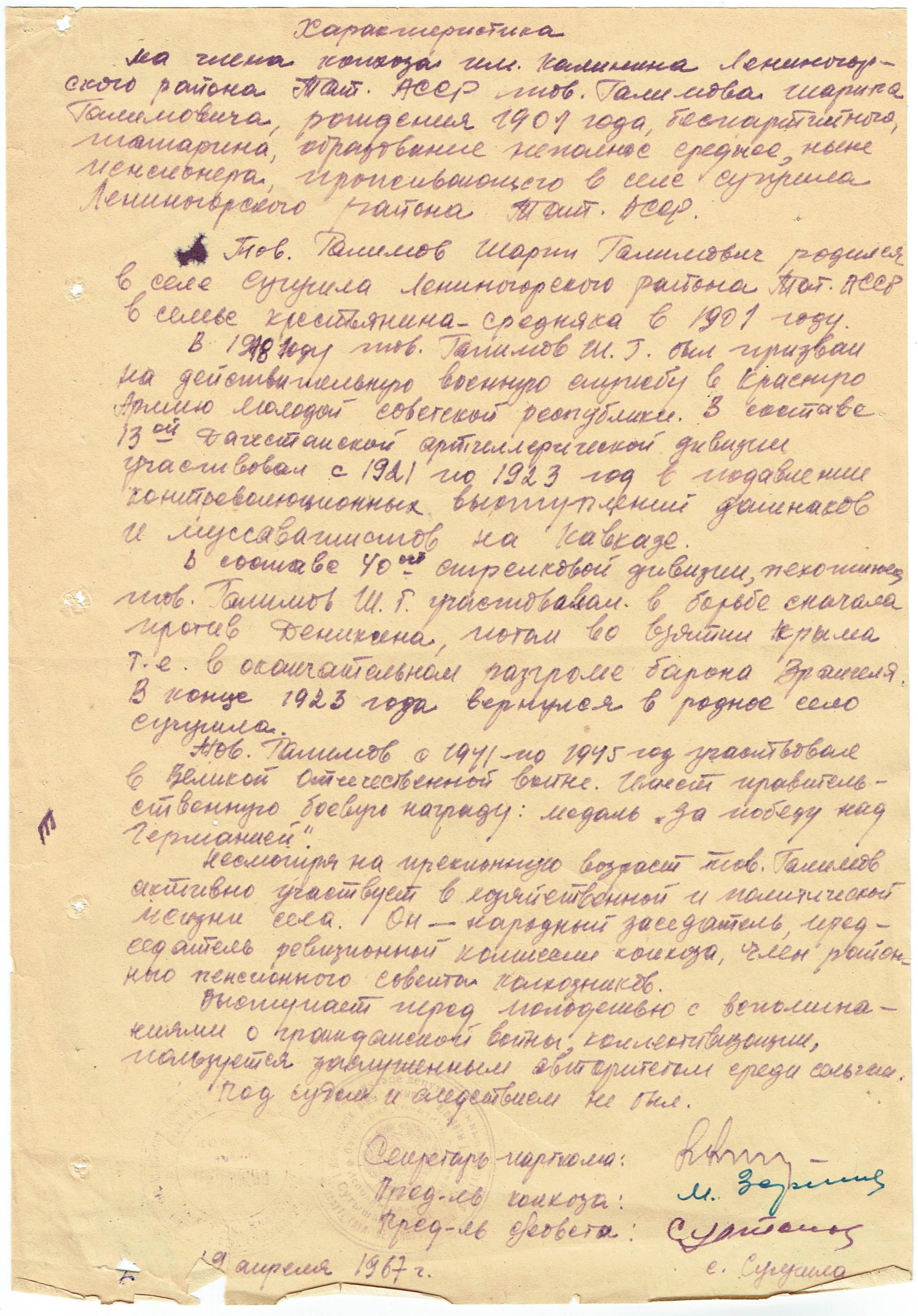 В составе 40-ой стрелковой дивизии пехотинец Галимов Ш.Г. участвовал в борьбе сначала портив Деникина, потом во взятии Крыма, т.е. в окончательном разгроме Врангеля. В конце 1923 года