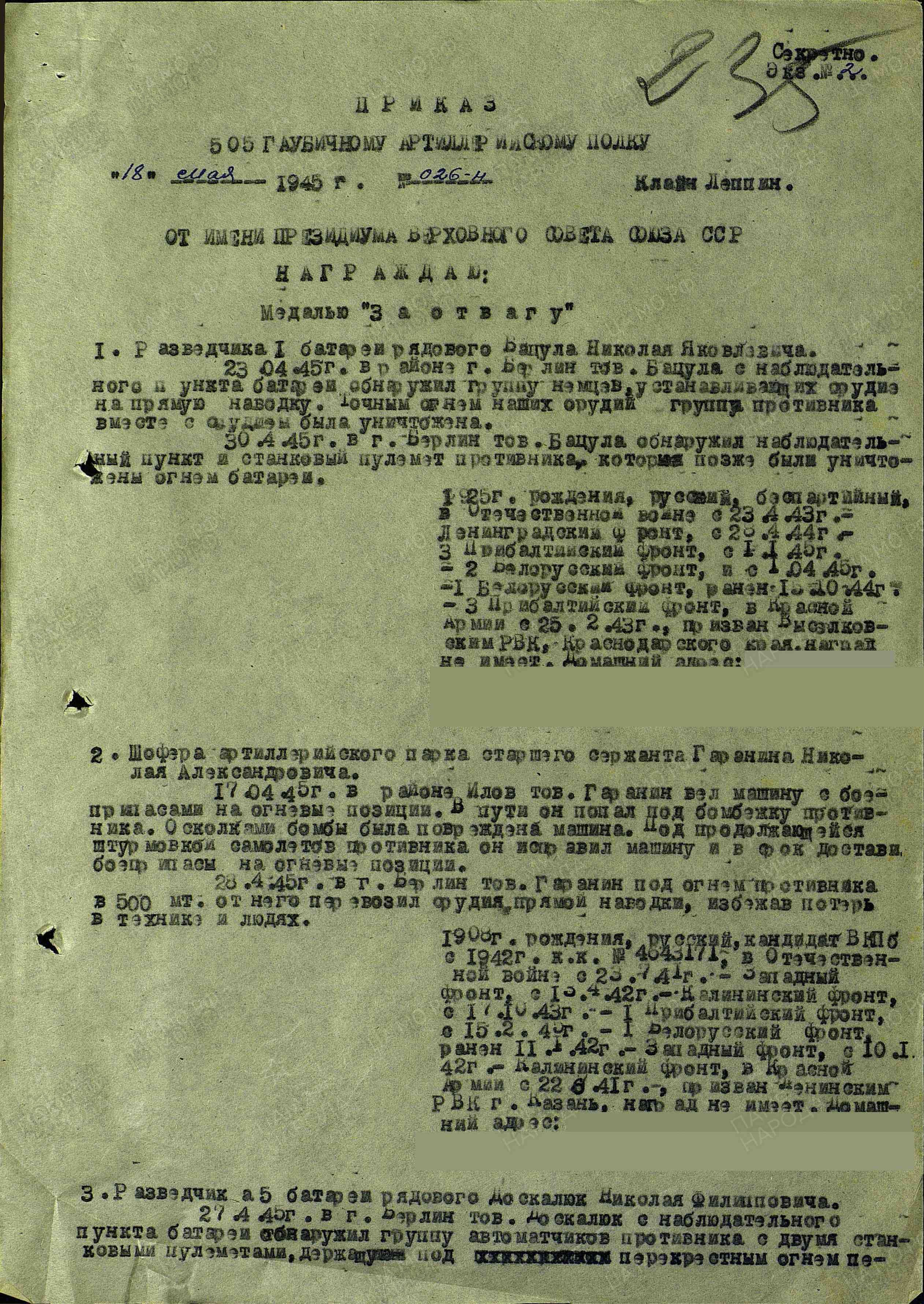 № наградного документа: 84