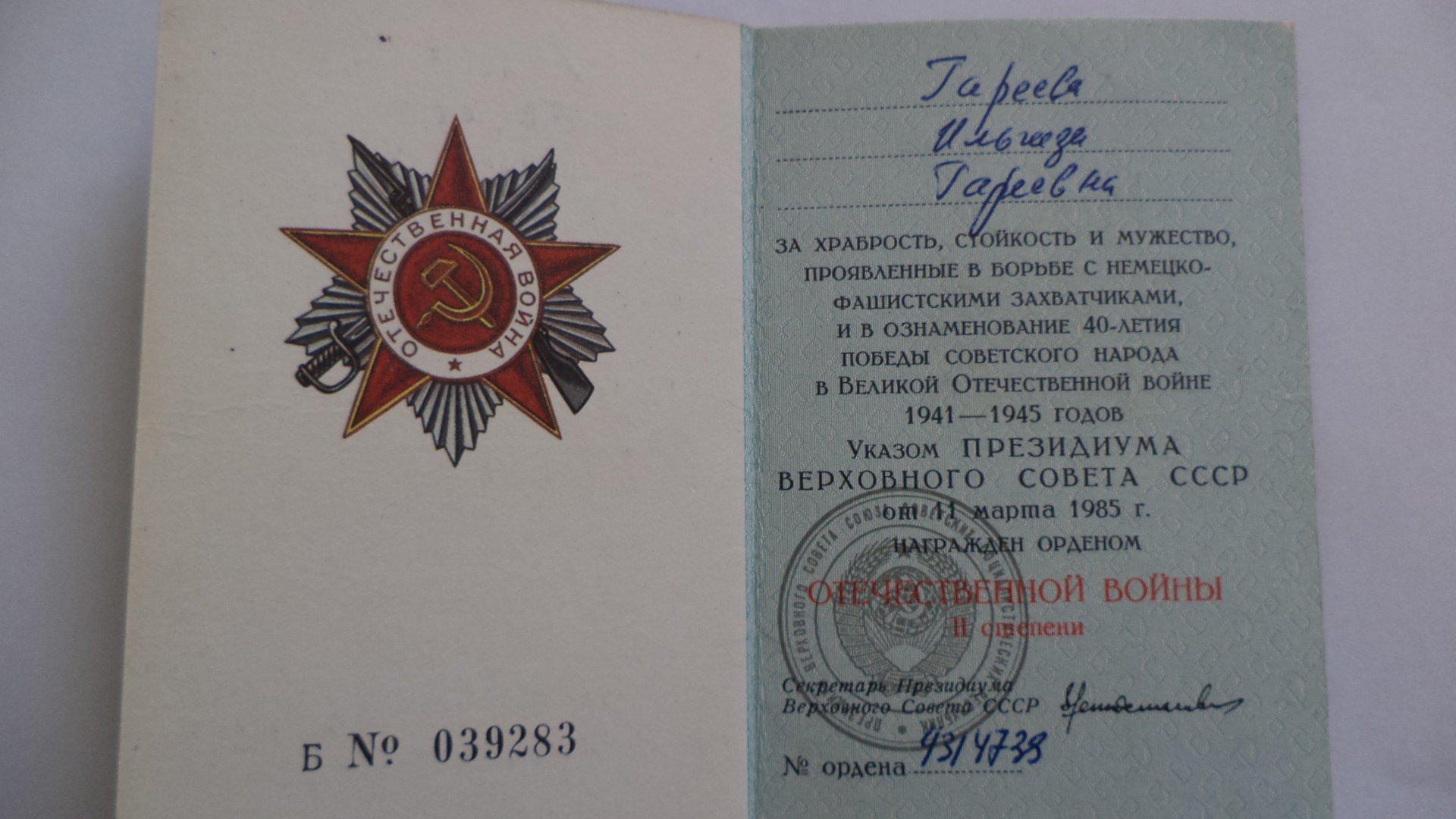 Гареева Ильгиза Гареевна награждена Орденом Отечественной войны, медалью «За победу над Германией», «им. Жукова» и «40 лет Вооруженным силам СССР», юбилейными медалями Победы в Великой Отечественной войне 1941 - 1945гг.