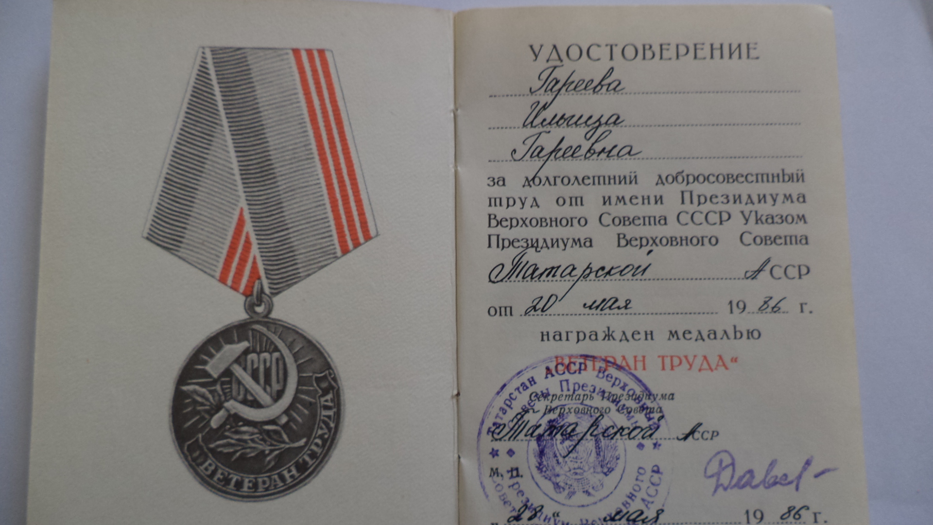 После возвращения на Родину Ильгиза Гареевна устроилась на работу заправщицей, там и познакомилась будущим мужем из Бавлов - Мансуровым Хамзой.