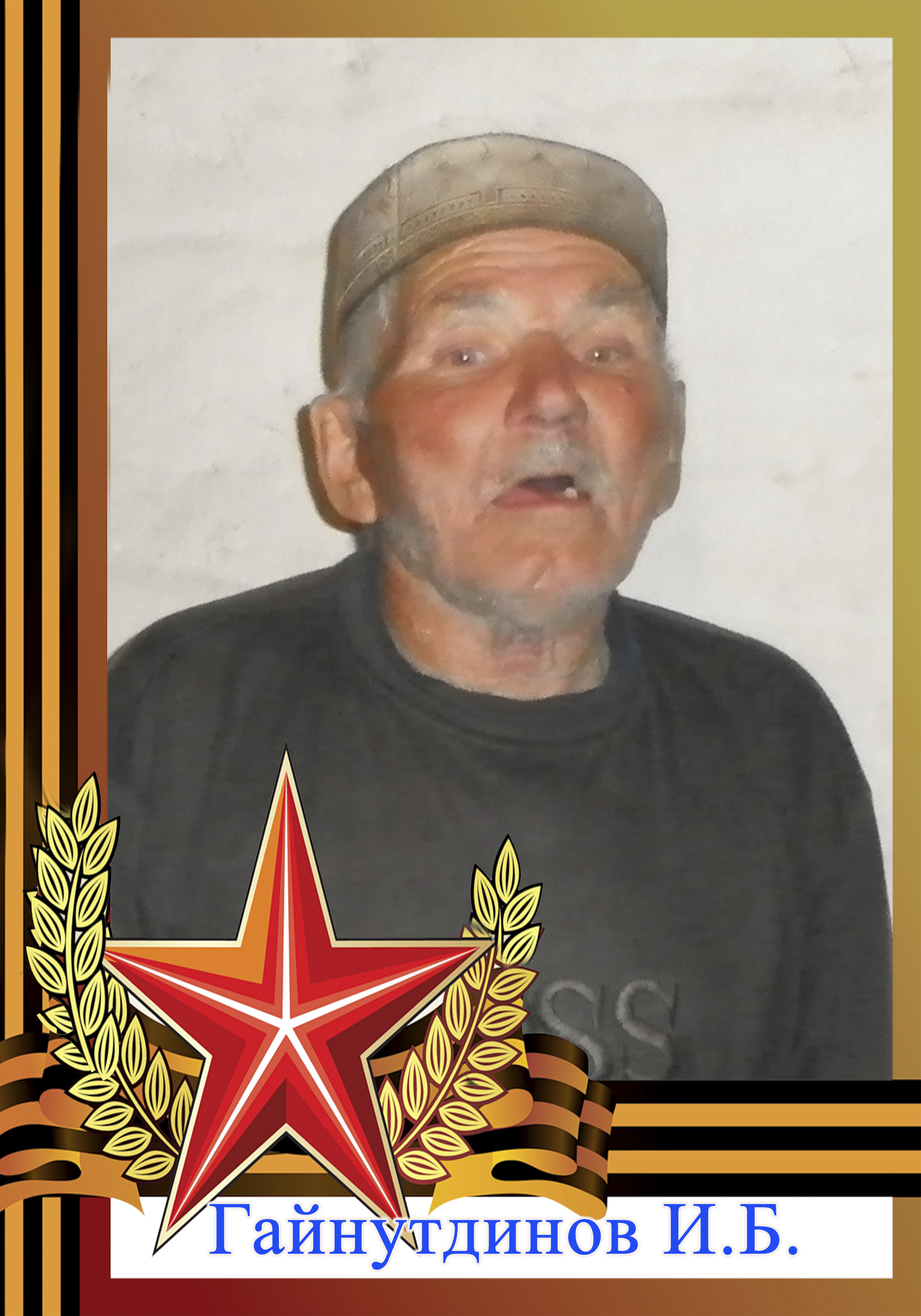 Труженик тыла. Родился в селе Ургагары Алькеевского района РТ 10.05.1930 г. Во время Великой Отечественной войны 1941-1945гг. и после войны работал разнорабочим в колхозе. С 1955 по 1964гг. работал на шахте (Рудник Голубовка). С 1964 года и до пенсии работал в совхозе «Ургагарский» плотником.