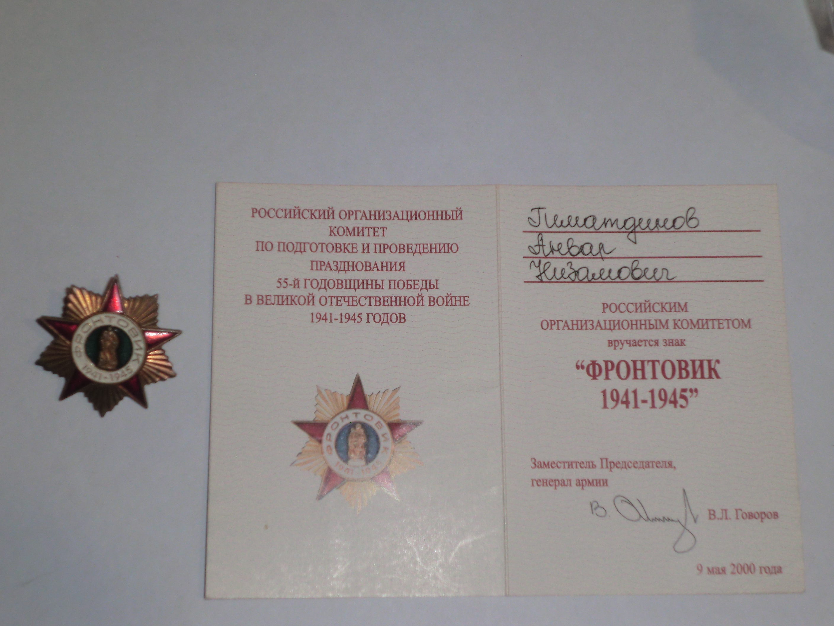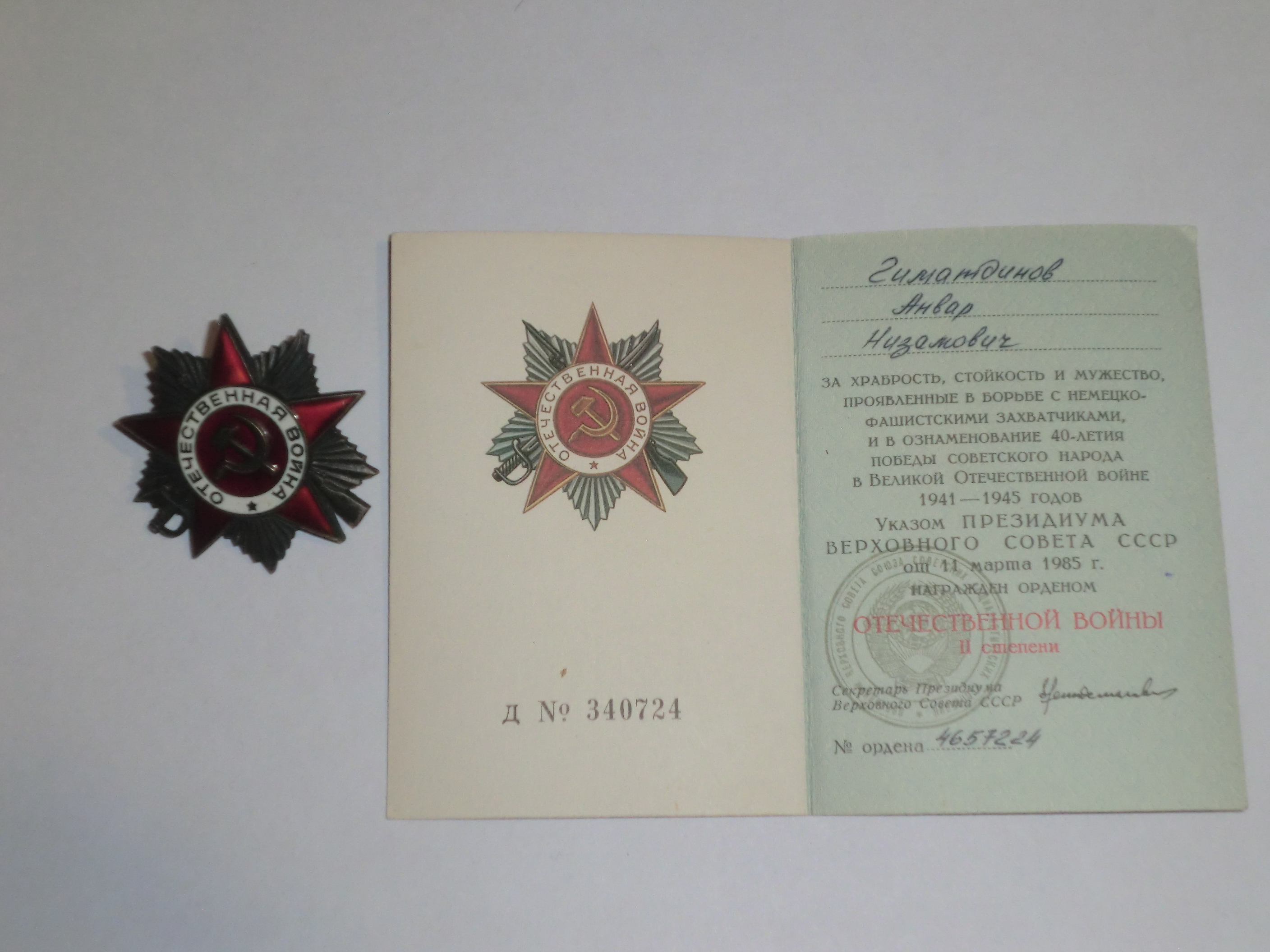 “Мин, Гыйматдинов Әнвәр Низам улы, 1923 елның 2 апрелендә Буа районы Карлы авылында туганмын. 1942 елның 9 нчы мартында армиягә киттем.