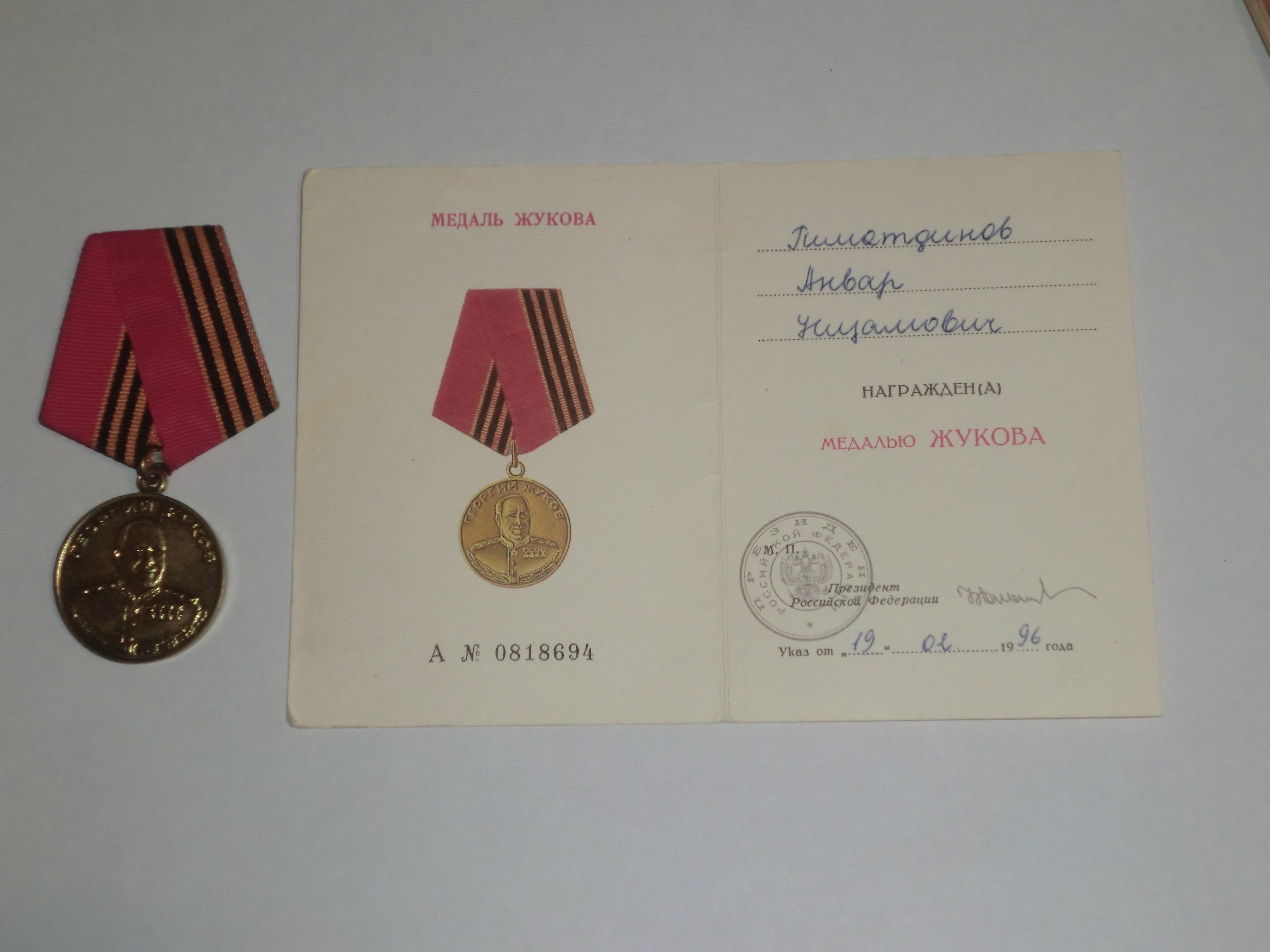 Когда началась война, моему дедушке, Гиматдинову Анвару Низамовичу, было всего 17 лет. Когда ему исполнился 18 лет он с такими же молодыми солдатами он ушёл защищать свою Родину в 1942 году. Война ужасна, она диктует свои жестокие законы. Человек там часто попадал в неожиданные ситуации Эшелон, в котором ехали мой дедушка и его товарищи, попал под массированный налёт немецких бомбардировщиков, где он получил своё первое ранение. Было жутко и страшно. Выше пятиэтажного здания взлетали на воздух куски железных рельсов и вагонов. Дедушка успел выйти из вагона, но его ураганной волной отбросило к земле. Он потерял сознание. Когда дедушка очнулся, он увидел рядом с собой груду мёртвых тел, лежавших штабелями друг на друге. Оказалось, что после бомбёжки погибших погрузили в вагоны. Моего дедушку тоже считали погибшим, поэтому он оказался вместе с ними в одном вагоне. Не возможно представить, как можно ехать в одном вагоне вместе с десятками погибшими солдатами. У дедушки на спине нашли 12 осколков. Болел целый месяц и очень сильно похудел. И его отправили в медкомиссию. Он весил в это время всего 42 килограмма. Ведь ему было 18 лет. Следы от осколков у него сохранились до сих пор.