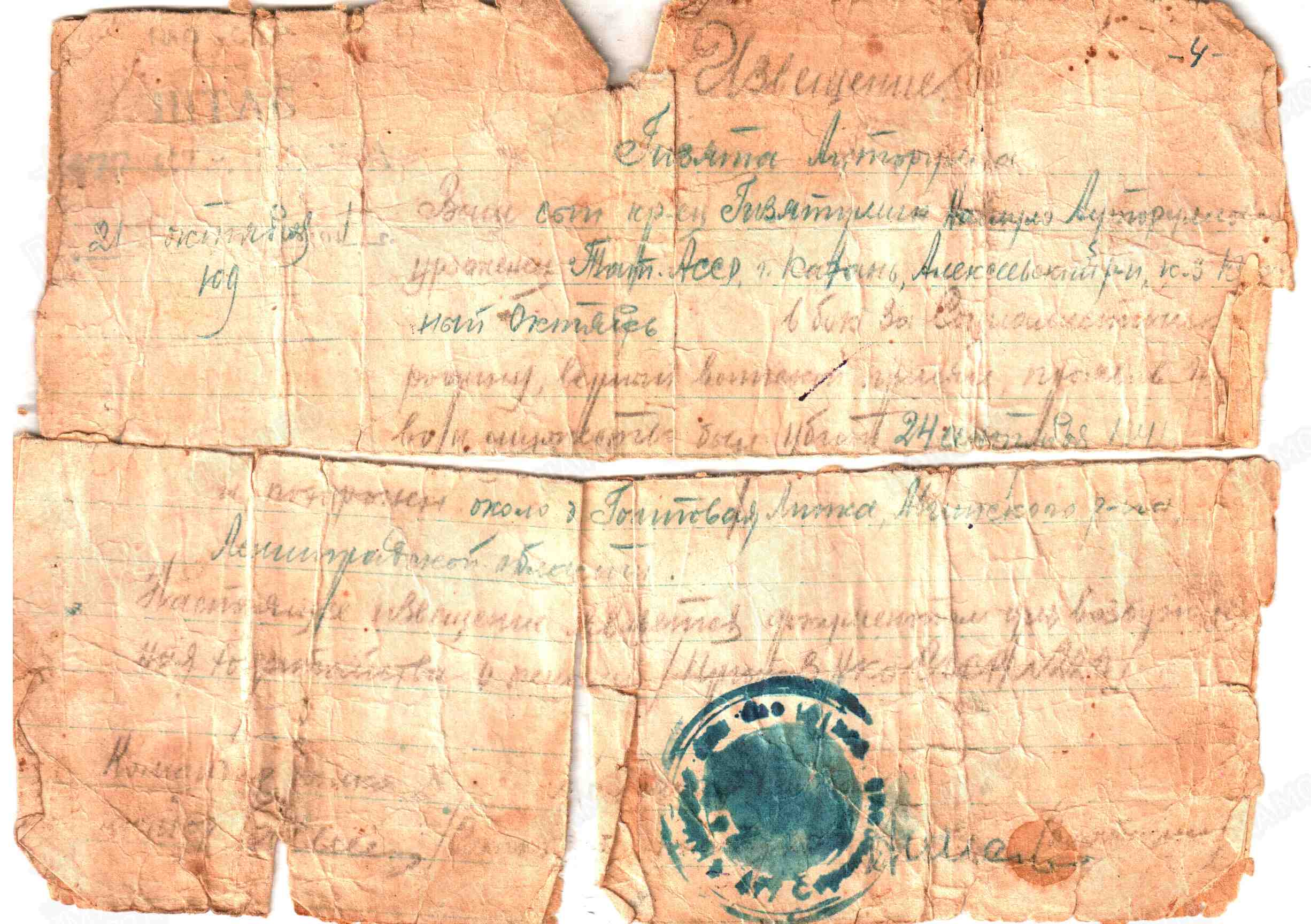 ГИЗЗАТОВ (ГИЗЗАТУЛЛИН) Набиулла Лотфуллович, 1921, с. Средние Тиганы. Жил в п. Кызыл Октябрь. Призван в РККА в 1940 Алексеевским РВК. Красноармеец, 128 СД 48 А Ленинградского фронта. Погиб 24 сент. 1941, д. Гонтовая Липка, Мгинский (Кировский) р-н, Ленинградская обл.