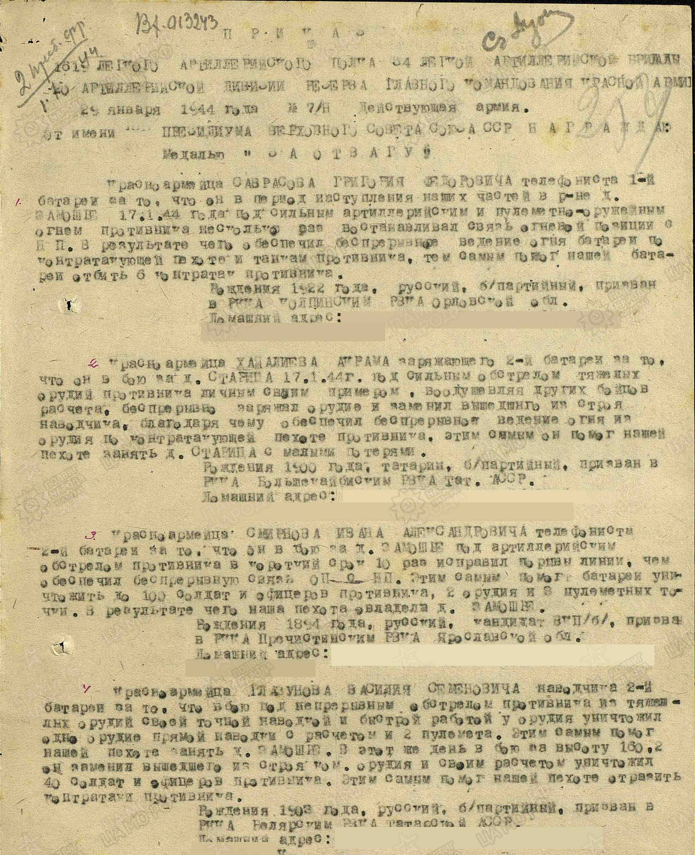 ГЛАЗУНОВ Василий Семёнович, 1903, с. Билярск. Мобилизован Билярским РВК. Красноармеец, наводчик орудия 1619 легко-артиллерийского полка 34 ЛАБр 20 АД РГК, Брянский, 2 Прибалт. фронт. Отличился при освобождении д. Замошье Новгородской обл. в январе 1944 г. Награждён медалью "За отвагу", орденом Отечественной войны 1 ст. (1985).