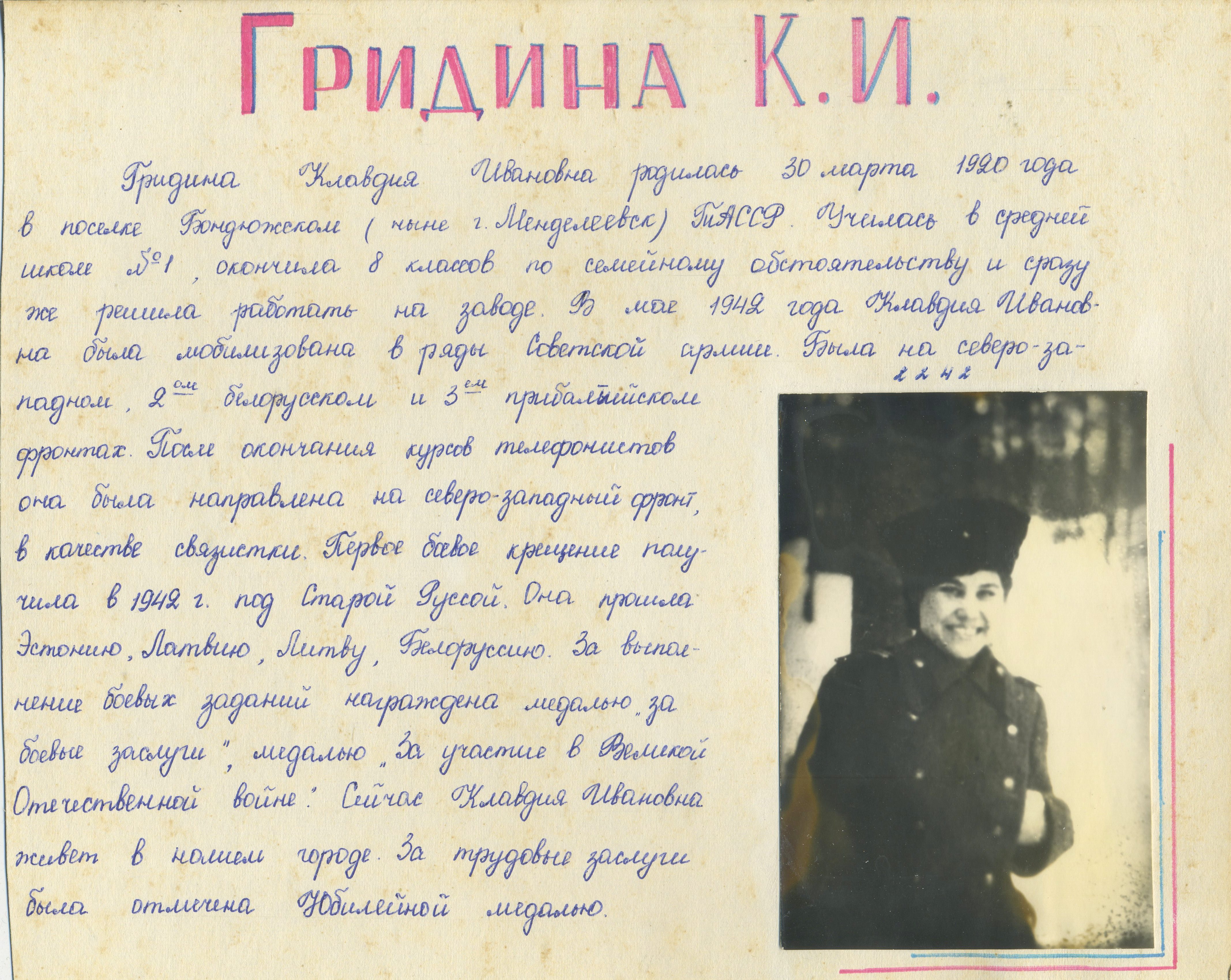 ГРИДИНА КЛАВДИЯ ИВАНОВНА