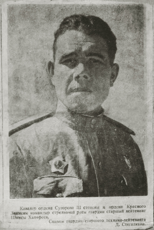 Свою первую награду - Орден Красного Знамени Шамсы Халяфиев (1914г.р.) получил в 24 года во время вооруженного конфликта с Японией на озере Хасан в 1938 году. А когда фашисты напали на СССР, одним из первых ушел на фронт.