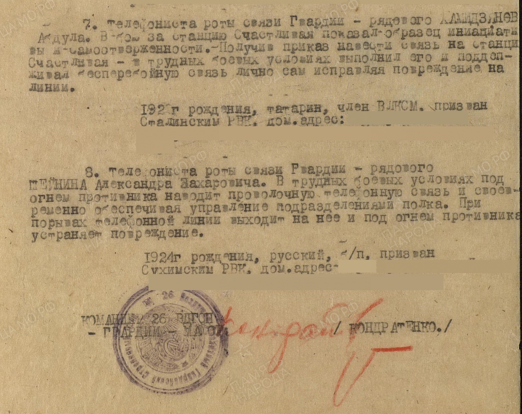 ХАМЕДЗЯНОВ Абдулла, 1922, с. Большие Тиганы /д. Ошняк. Мобилизован Сталинским РВК г. Казань. Член ВЛКСМ. В 1944-1945 – гв. мл. сержант, связист-телефонист 26 гв. воздушно-десантного стрелкового полка 9 гв. ВДД 2 УкрФ. Награждён медалью «За боевые заслуги» в нояб. 1944. Умер от ран 21 янв. 1945, Польша, Катовицкое воеводство, повят Ченстоховский, г. Ченстохов, ул. Копицкого 178, школьный сад.