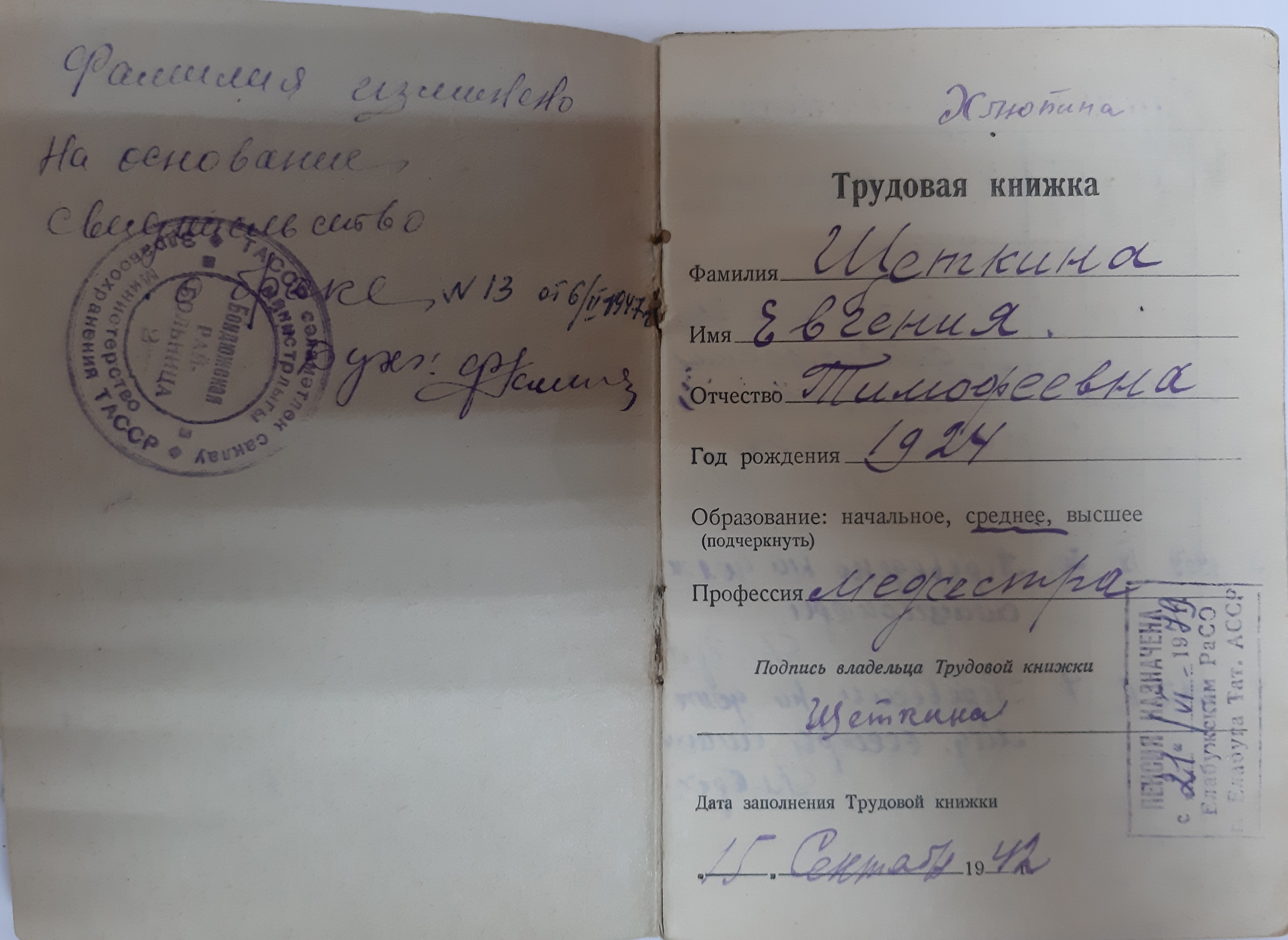 ХЛЮПИНА (ЩЕТКИНА) ЕВГЕНИЯ ТИМОФЕЕВНА