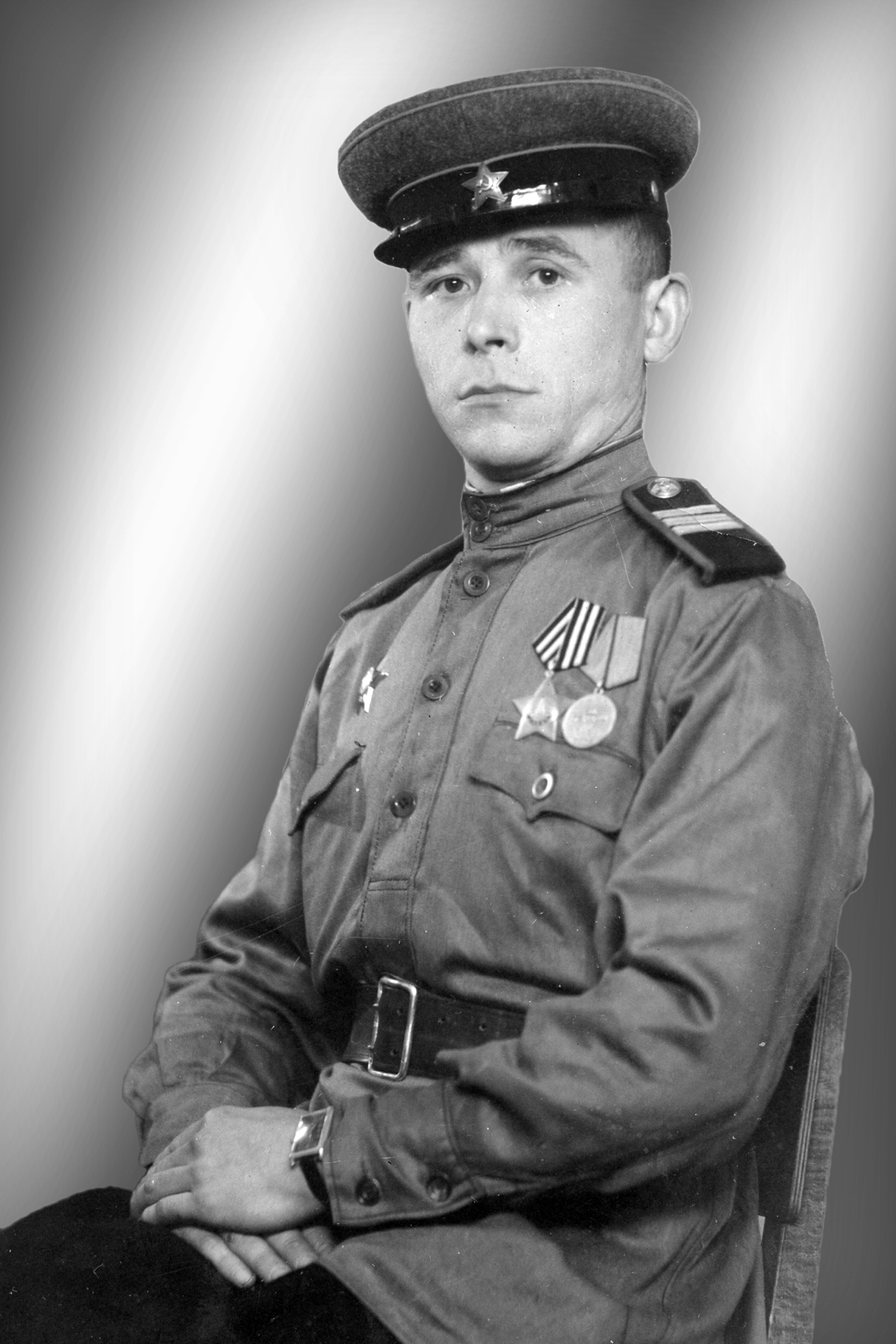 Воевал на Западном, Юго-Западном, Калининском, Южном, Первом Белорусском фронтах, механик-водитель бронемашины 93 отдельного мотоциклетного батальона. Трижды ранен, дважды тяжело.