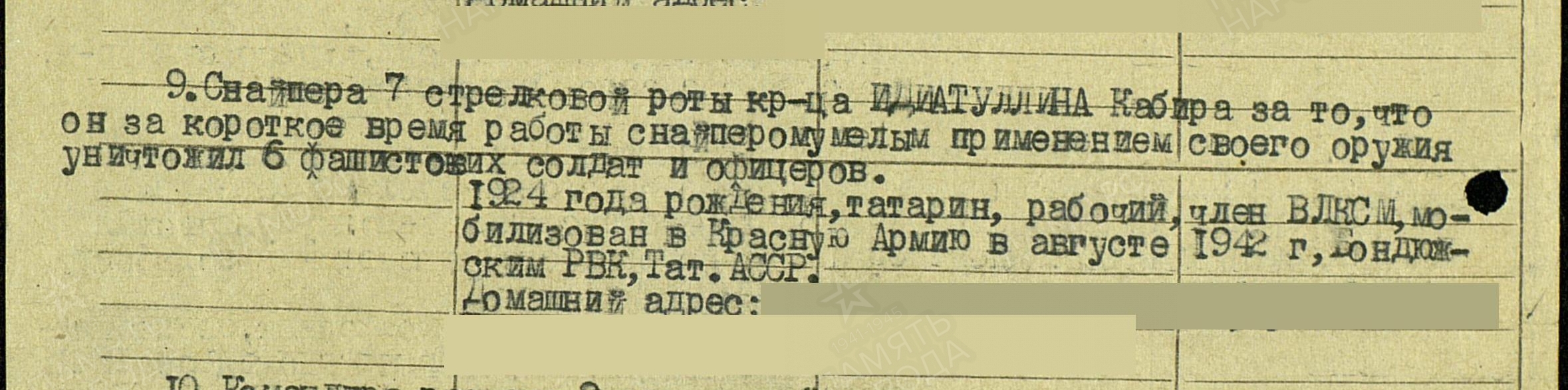 Родился в 1924 г., мобилизован Бондюжским районным военкоматом 08.1942 г.