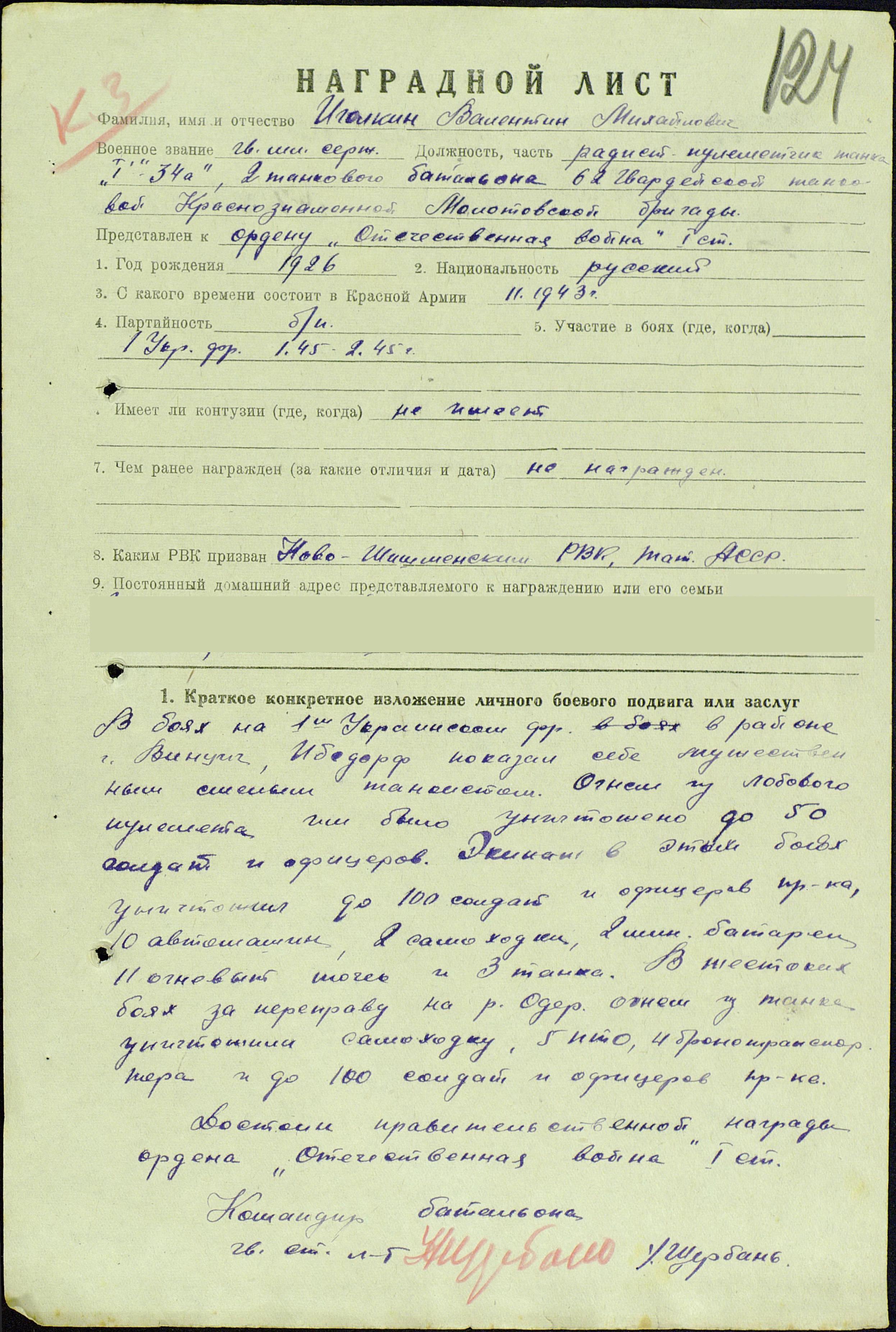 Как о лучшем стрелке – радисте батальона писали о нем в «Боевом листке», призывая брать пример в бою с гвардии сержанта Иголкина Валентина Михайловича.