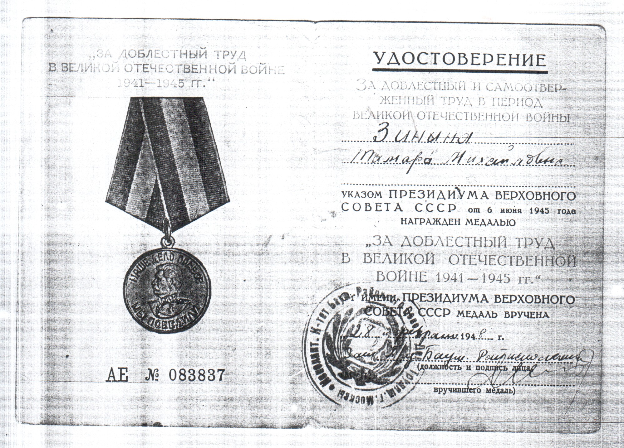 ИЛЬИНА (ЗИНИНА) ТАМАРА МИХАЙЛОВНА