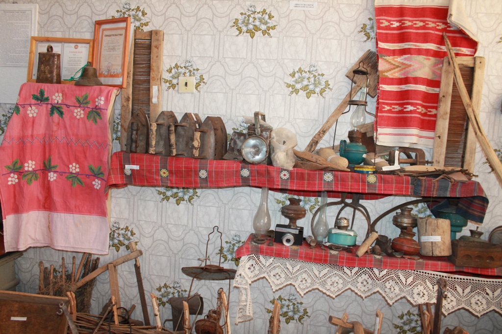В первый раздел по истории села входит этнографическая экспозиция. Здесь собраны предметы ткацкого станка (набелки, запрегалень, челнок, бёрда, нит), домашняя утварь (рубеля для глажки белья, гребёнка, весёлка, махотка, макитра, глиняный кувшин, самовар, чугунок, утюг, рагулька, ступа, кочерга, рогач), столярные инструменты (рубанок, пила), лапти, серп, глиняные кувшины, крынки, утюги, которые нагревали при помощи горячих углей, кадки, ухваты, чугуны.