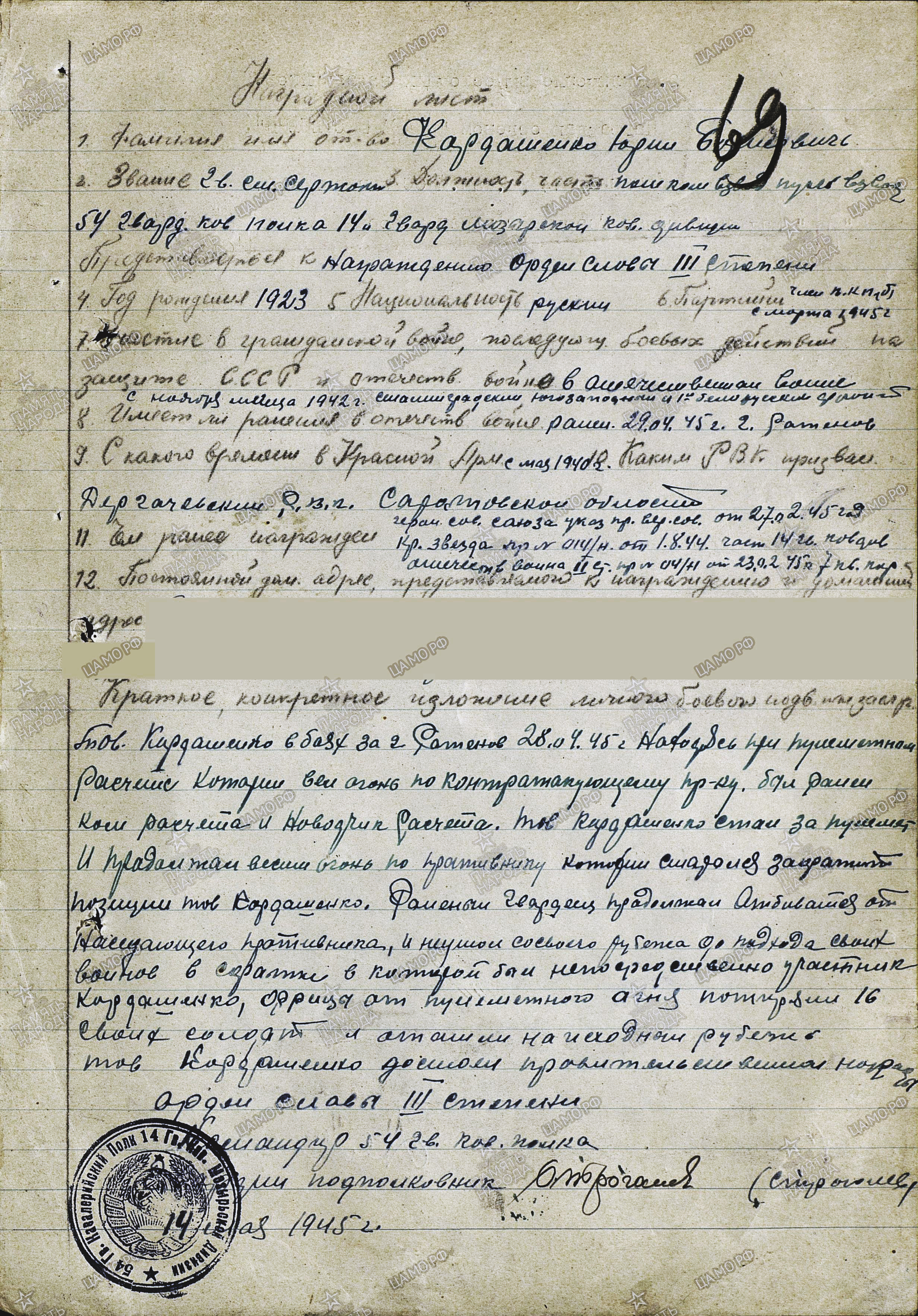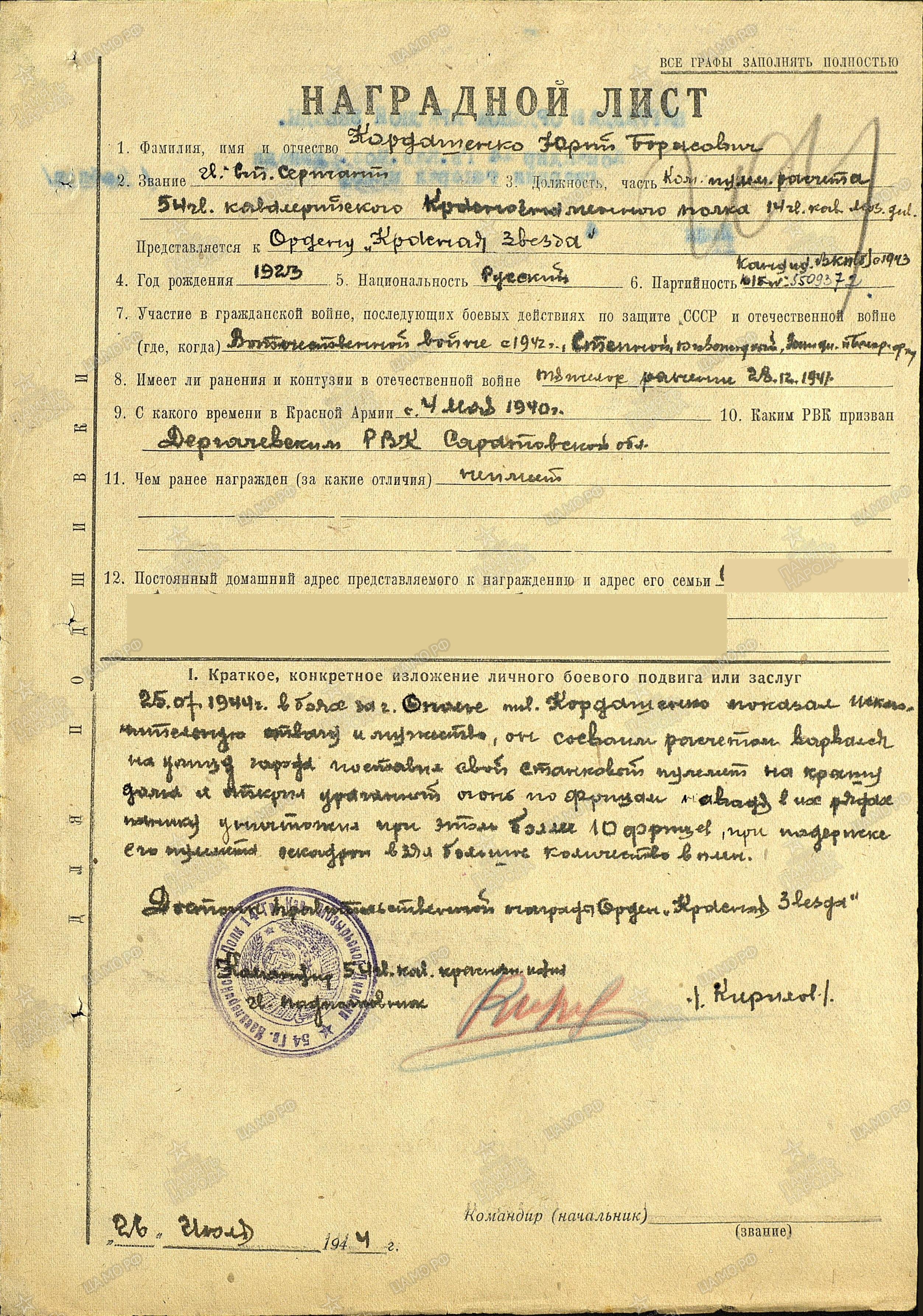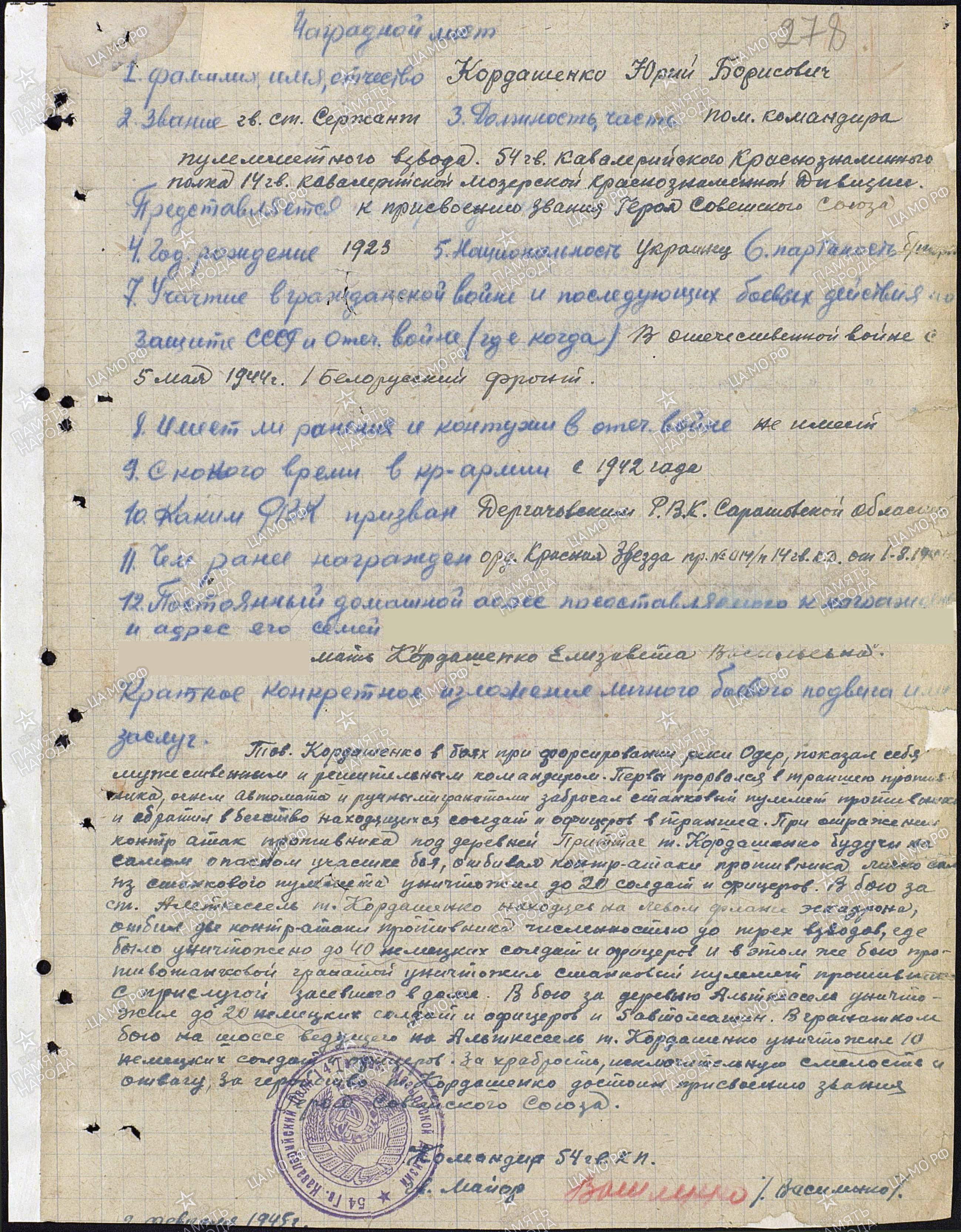 КАРДАШЕНКО ЮРИЙ БОРИСОВИЧ - ГЕРОЙ СОВЕТСКОГО СОЮЗА