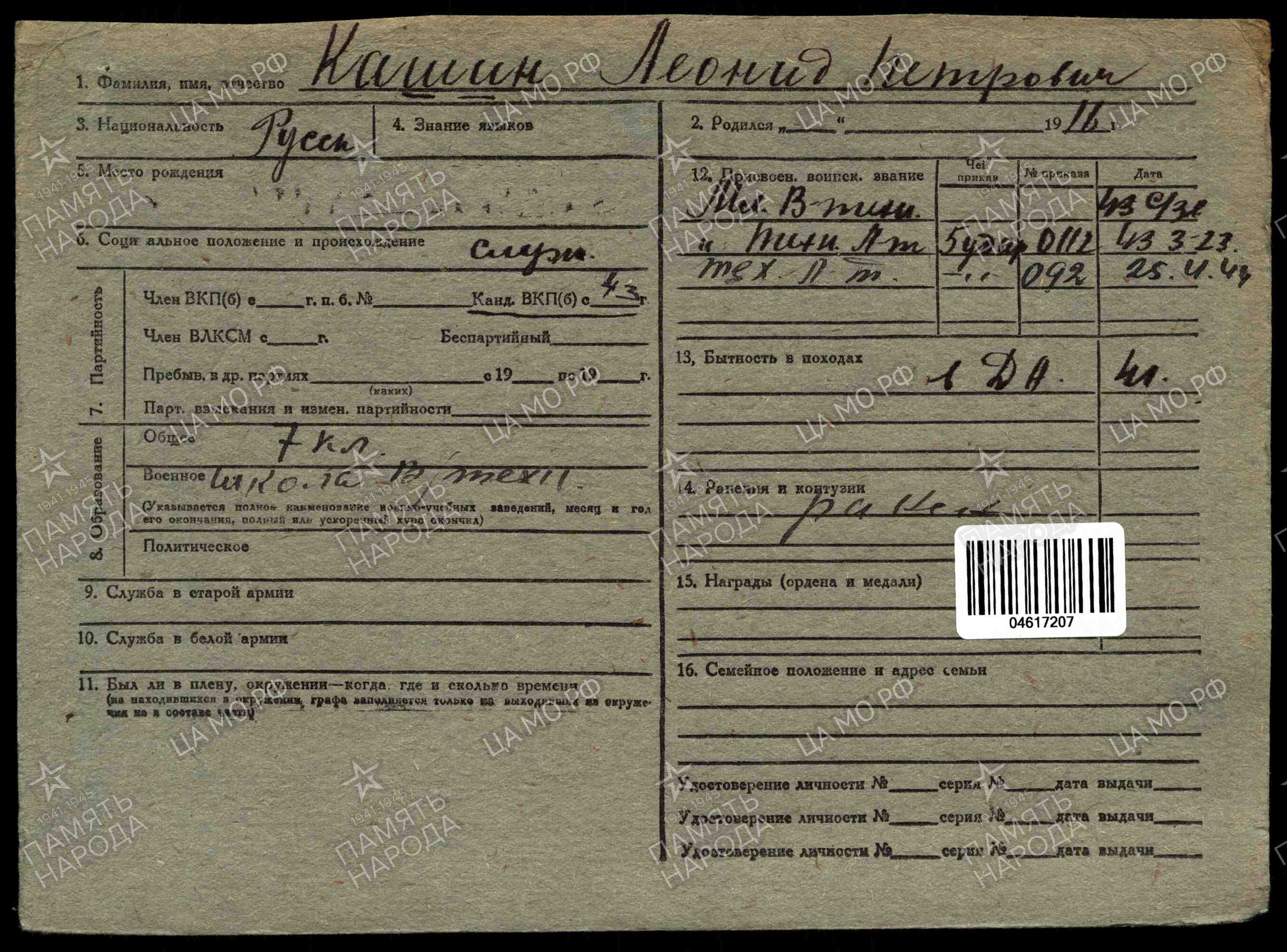 КАШИН ЛЕОНИД ПЕТРОВИЧ