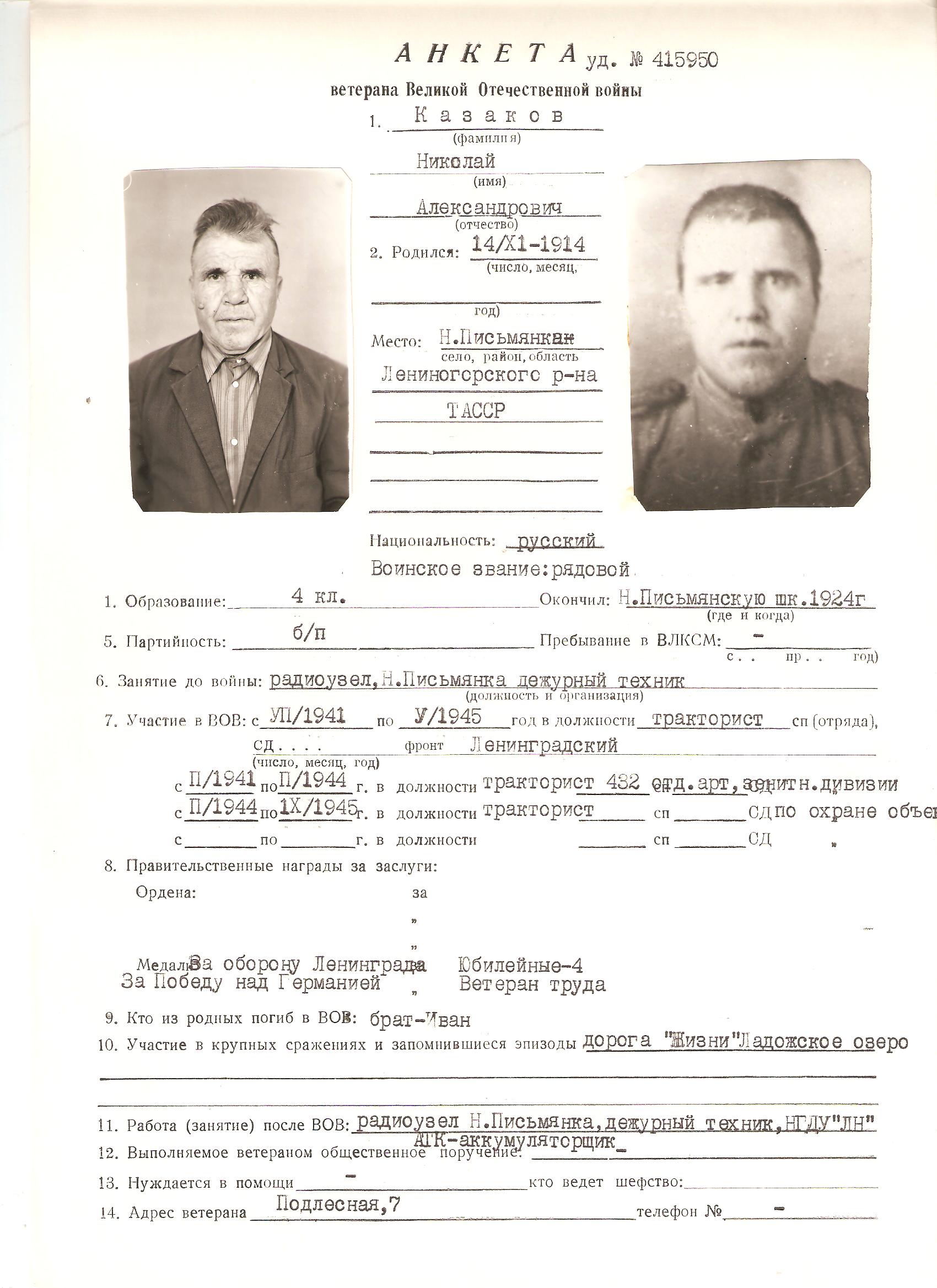 КАЗАКОВ НИКОЛАЙ АЛЕКСАНДРОВИЧ