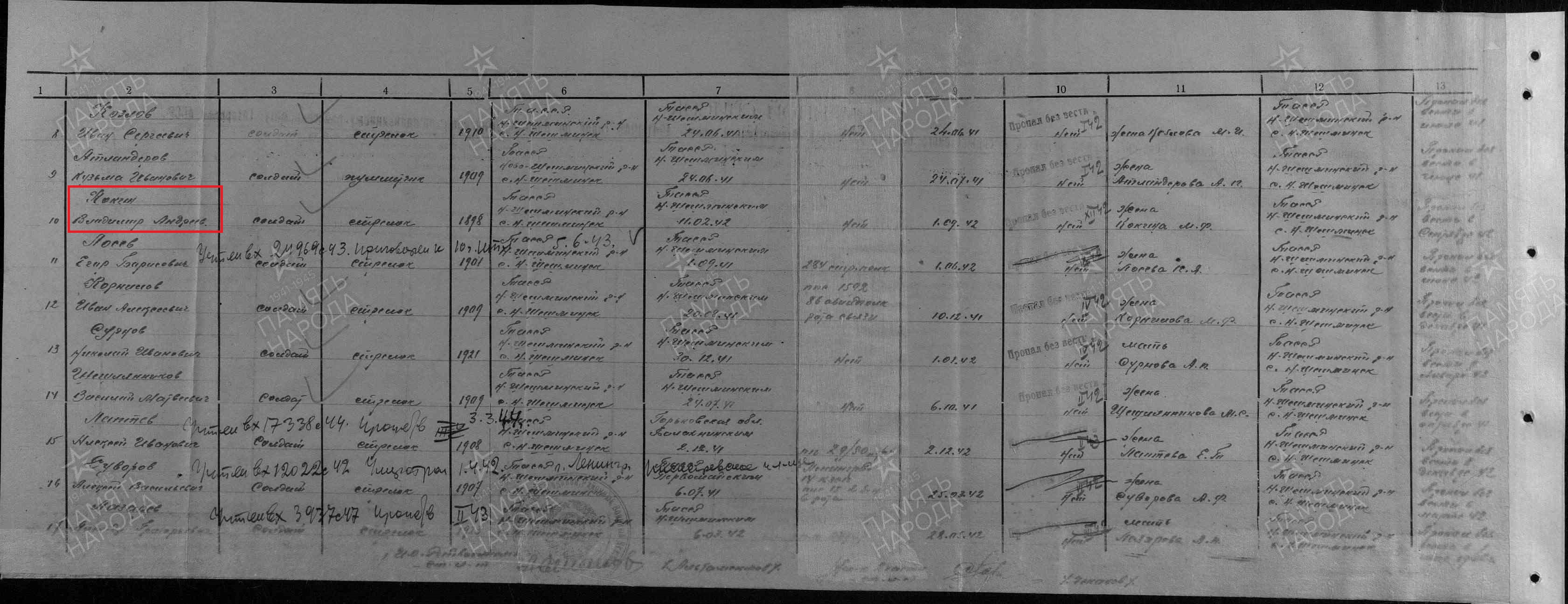 кр-ц. Пропал без вести 12.1942 г.