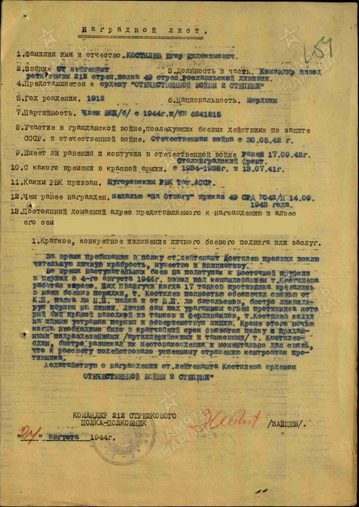 КОСТЫЛЕВ ЕГОР ЕВДОКИМОВИЧ
