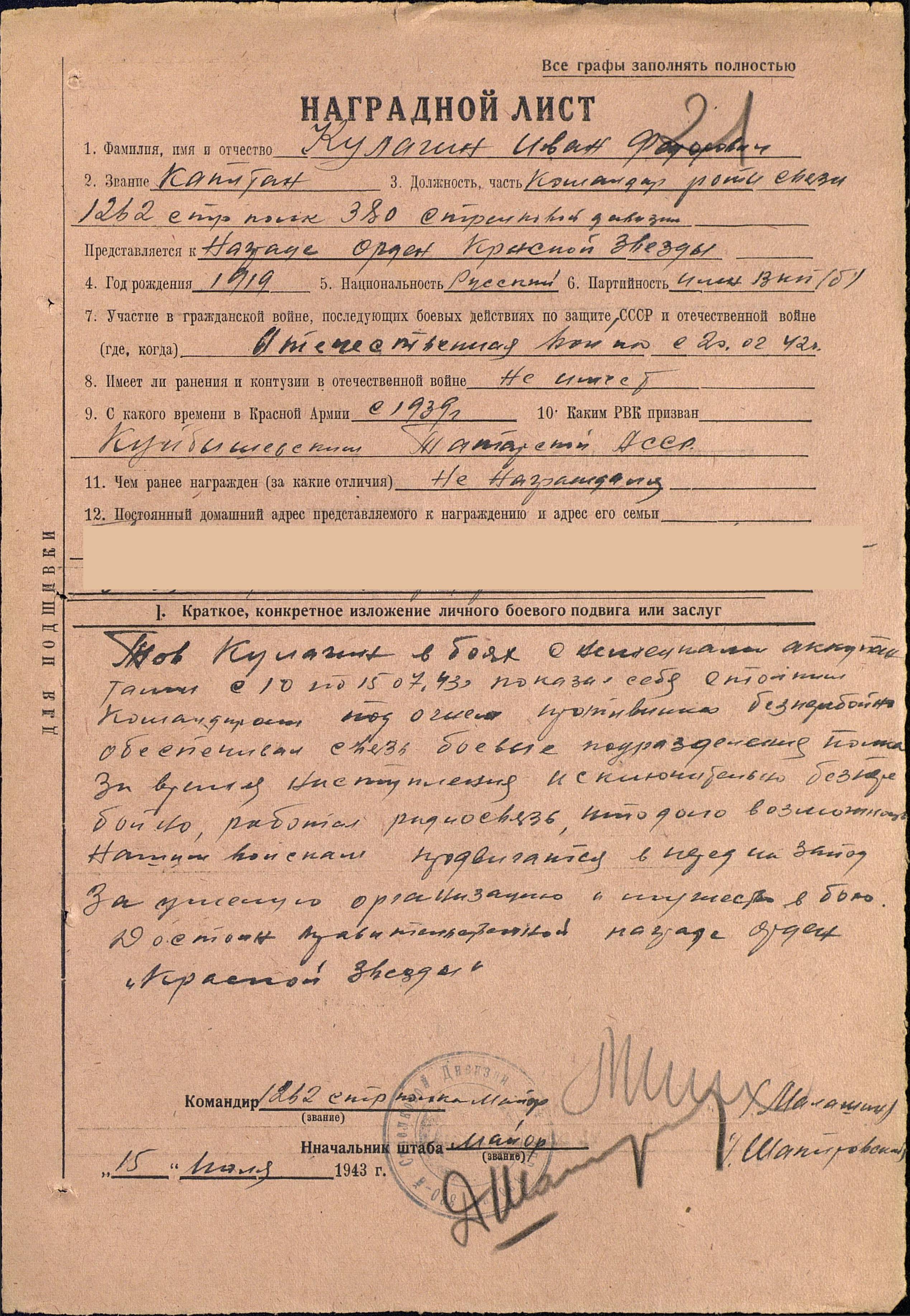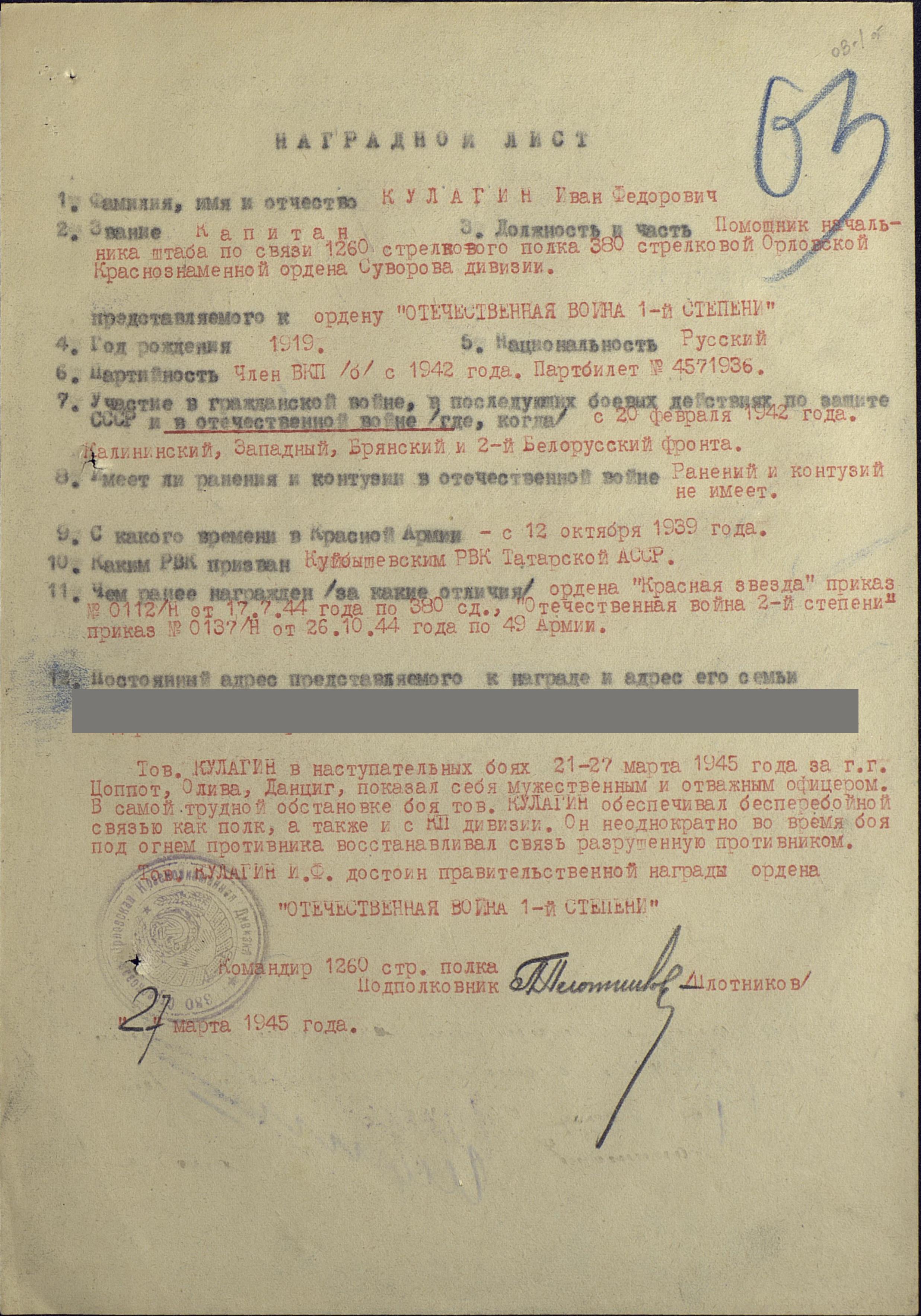 КУЛАГИН ИВАН ФЁДОРОВИЧ