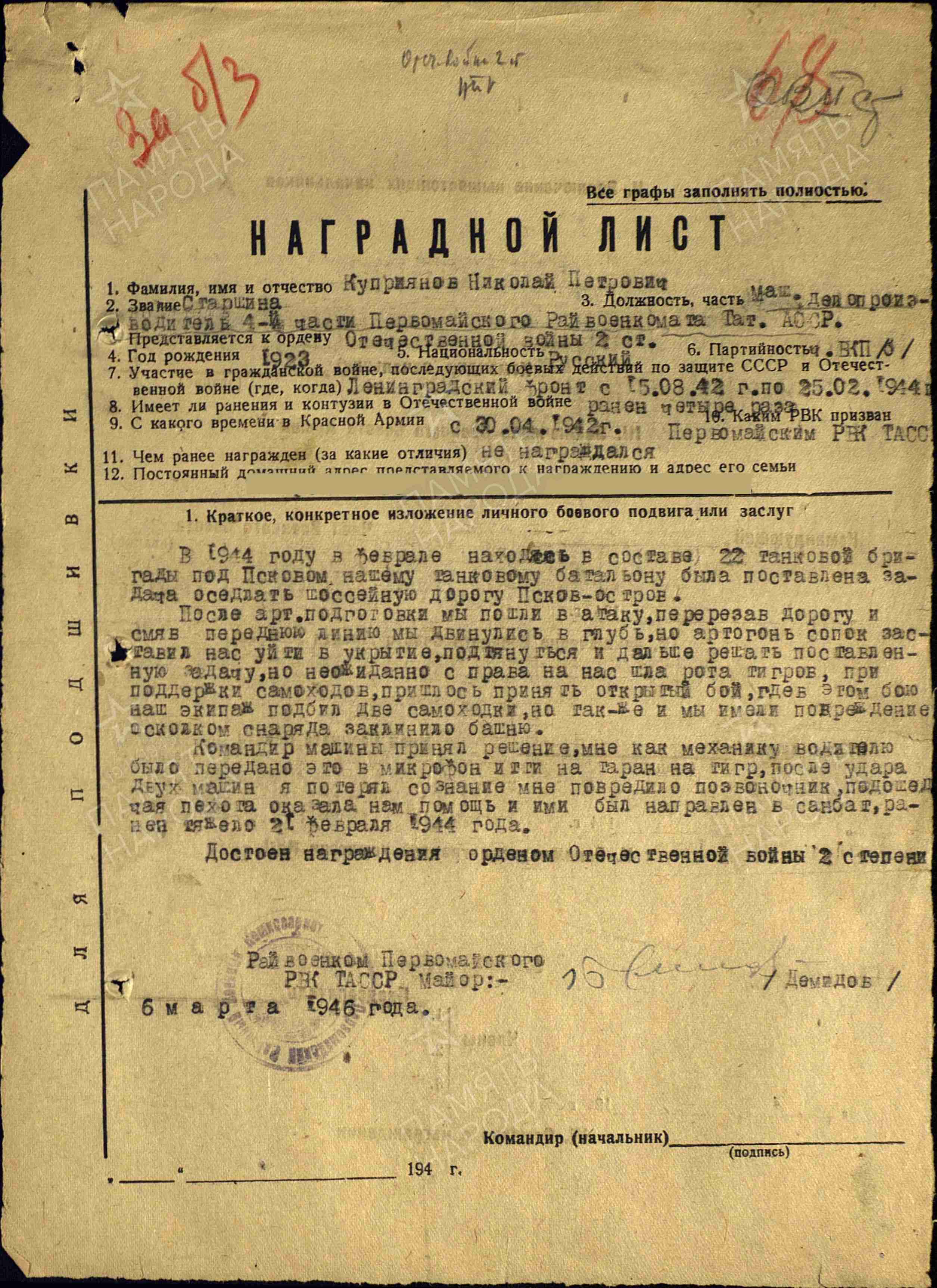 КУПРИЯНОВ НИКОЛАЙ ПЕТРОВИЧ