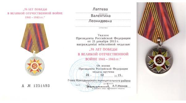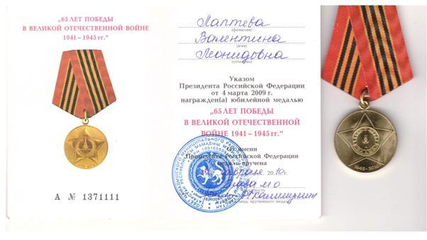 Валентина Леонидовна считается «Несовершеннолетним узником фашистских лагерей, гетто и других мест принудительного содержания, созданных фашистами и их союзниками в период второй мировой войны». Около пяти лет было ей, когда началась Великая Отечественная война. Отца, Лаптева Леонида, призвали на войну рядовым сразу же. И он пропал без вести в июне 1944 года.