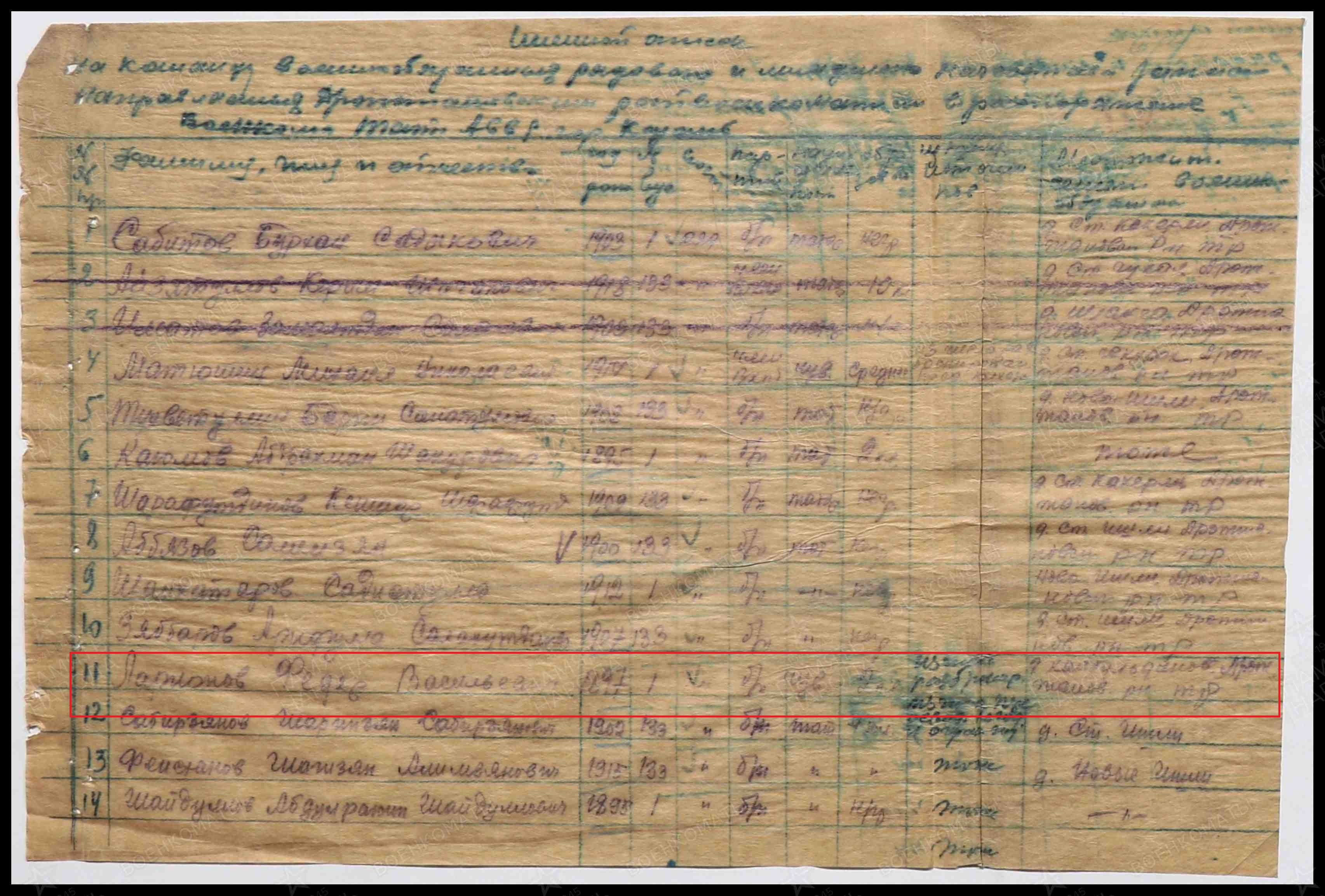 Ларионов Федор Васильевич родился в деревне Хайбулдино Дрожжановского района 13 августа 1897 года.. После начало войны был мобилизован Дрожжановским РВК на войну 16 апреля 1942 года.