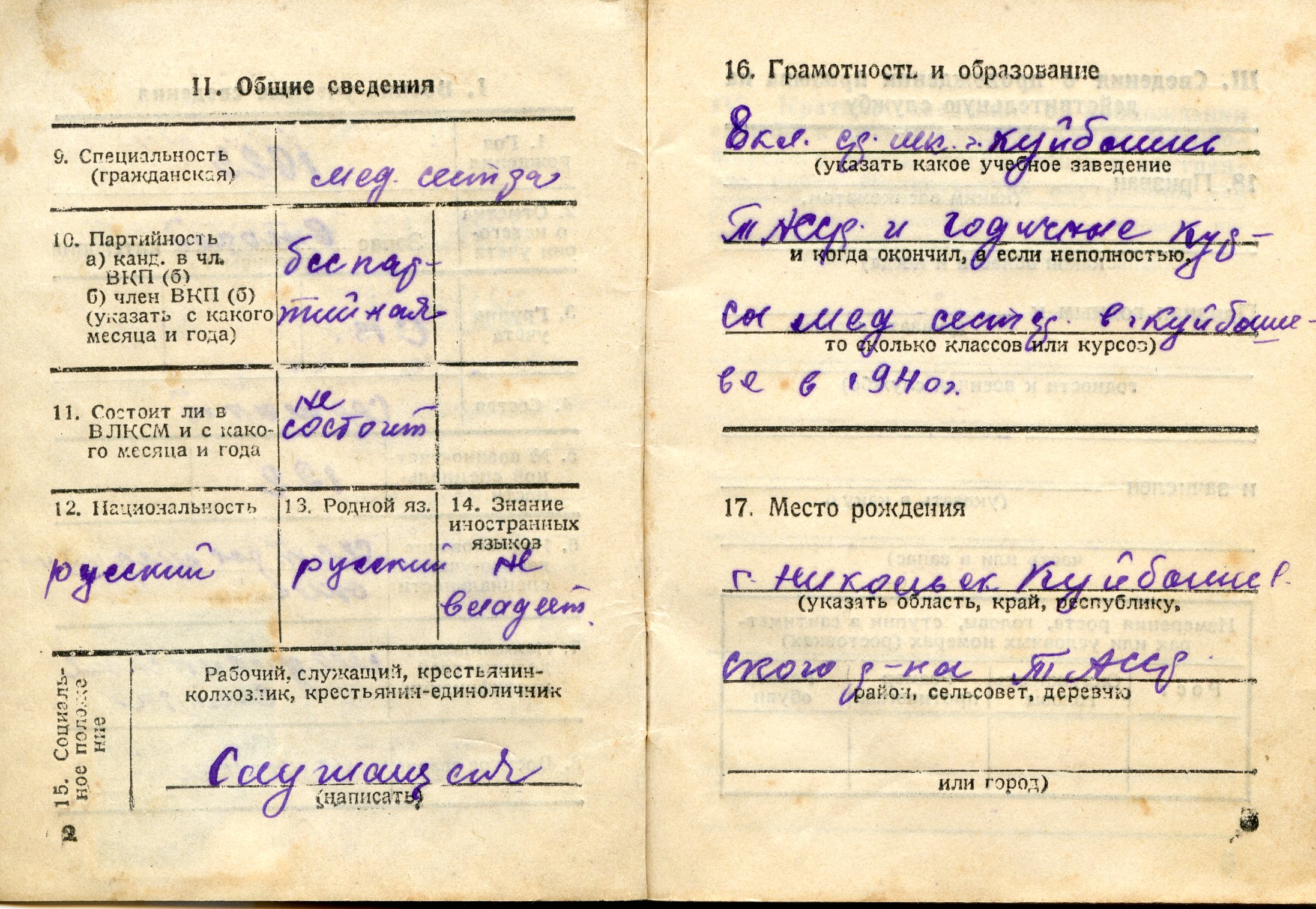 Труженица тыла. Все время проработала медицинской сестрой. Ветеран труда.