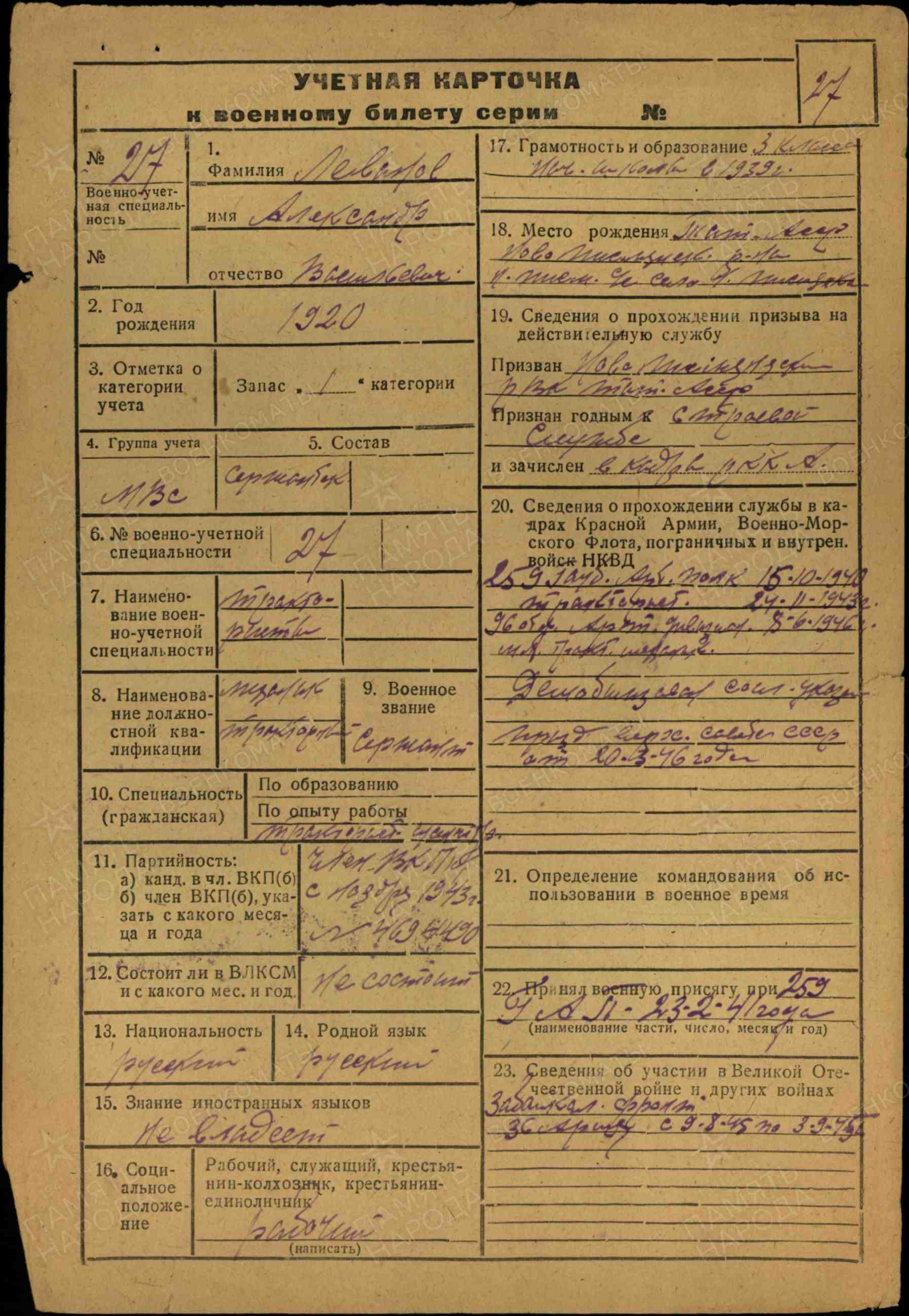 Воинское звание: сержант.