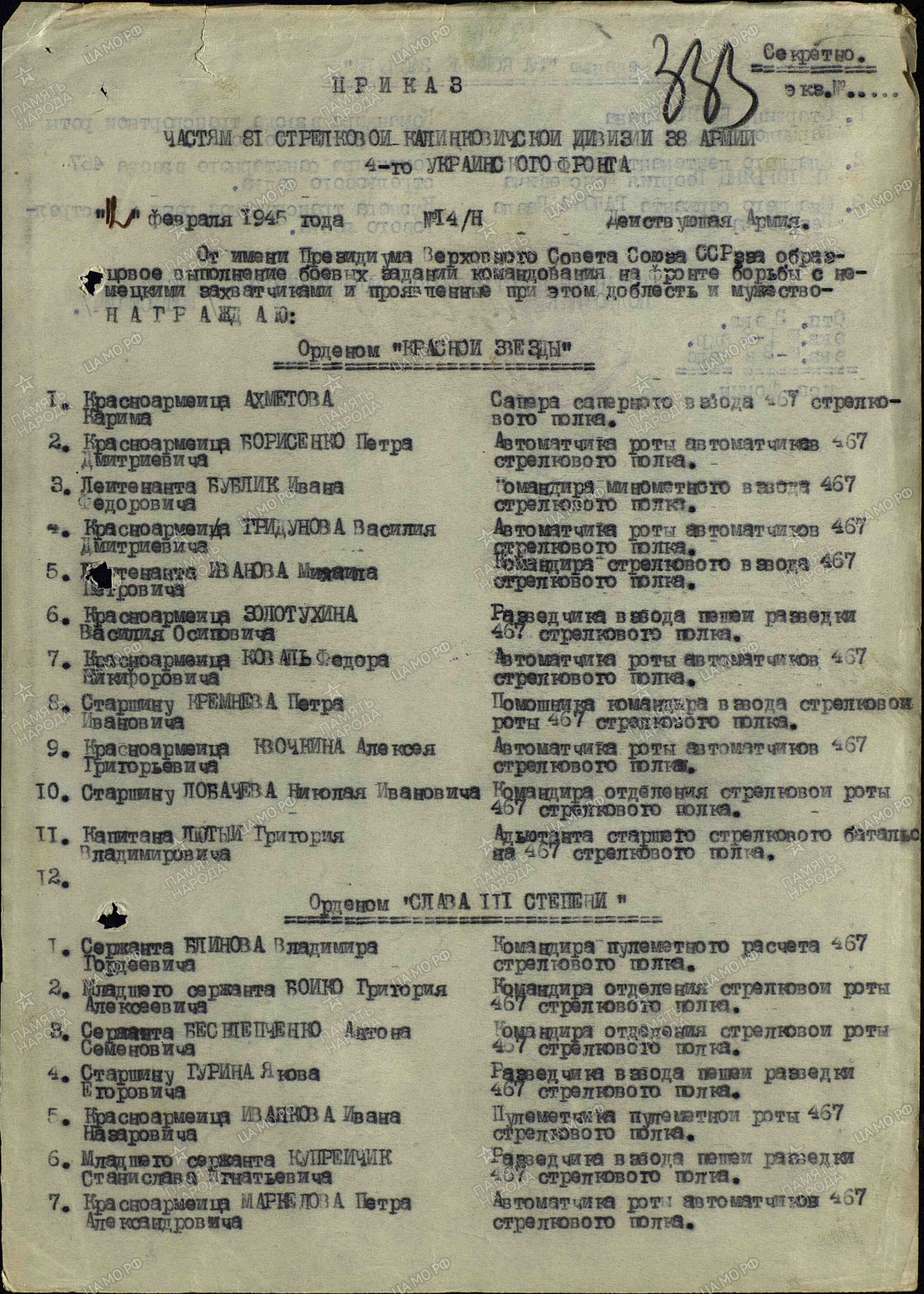 Источник: Солдаты Победы.1941-1945.Книга 2. Чистополь. 2012. - С. 97-98.