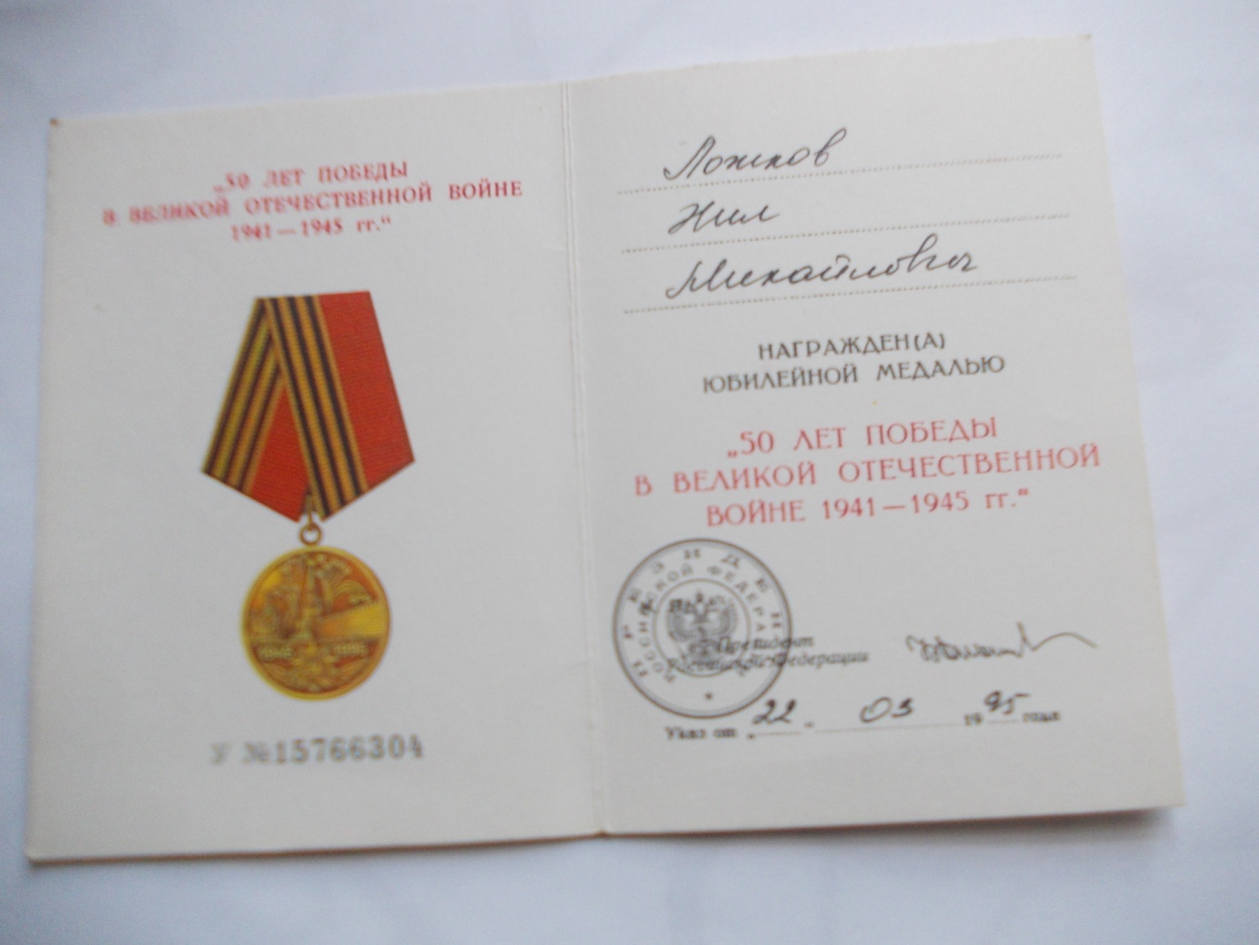 Военную присягу принял 19.12.1943г.