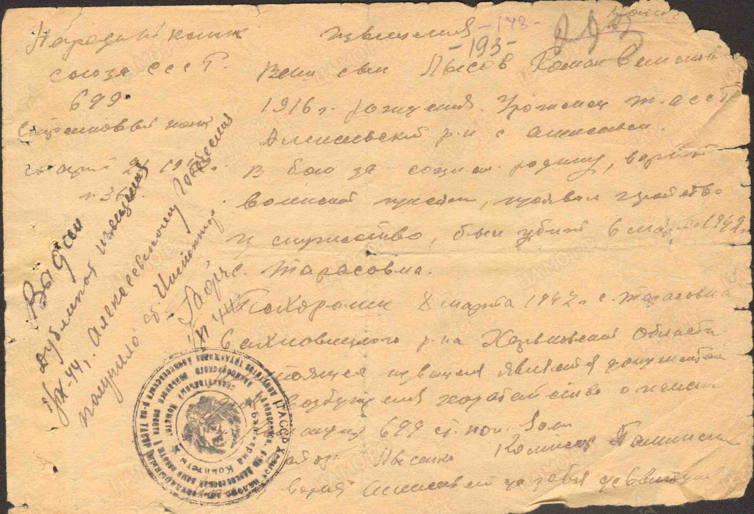 ЛЫСОВ Роман Семёнович, 1916, с. Новоспасск, жил в с. Алексеевское. Мобилизован Алексеевским РВК 23 июня 1941. Красноармеец, 496 СП 148 СД 13 А Западного/ Центрального фронта, 3 А Брянского фронта. В 1942 – стрелок 699 СП 393 СД 6 А Юго-Западного фронта. Погиб 6 марта 1942, с. Тарасовка/ с. Червона Степь, Сахновщинский р-н, Харьковская обл., УкрССР.
