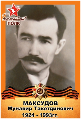 Максудов Мунавир Такиевич гв. ст. сержант-родился 1924 году в д.Миннибаево Альметьевского района.Место призыва: Альметьевский РВК, Татарская АССР, Альметьевский р-н, мобилизован 1942 году, демобилизован в 1946 году. Умер 1993 году. Захоронен в Средней Азии.