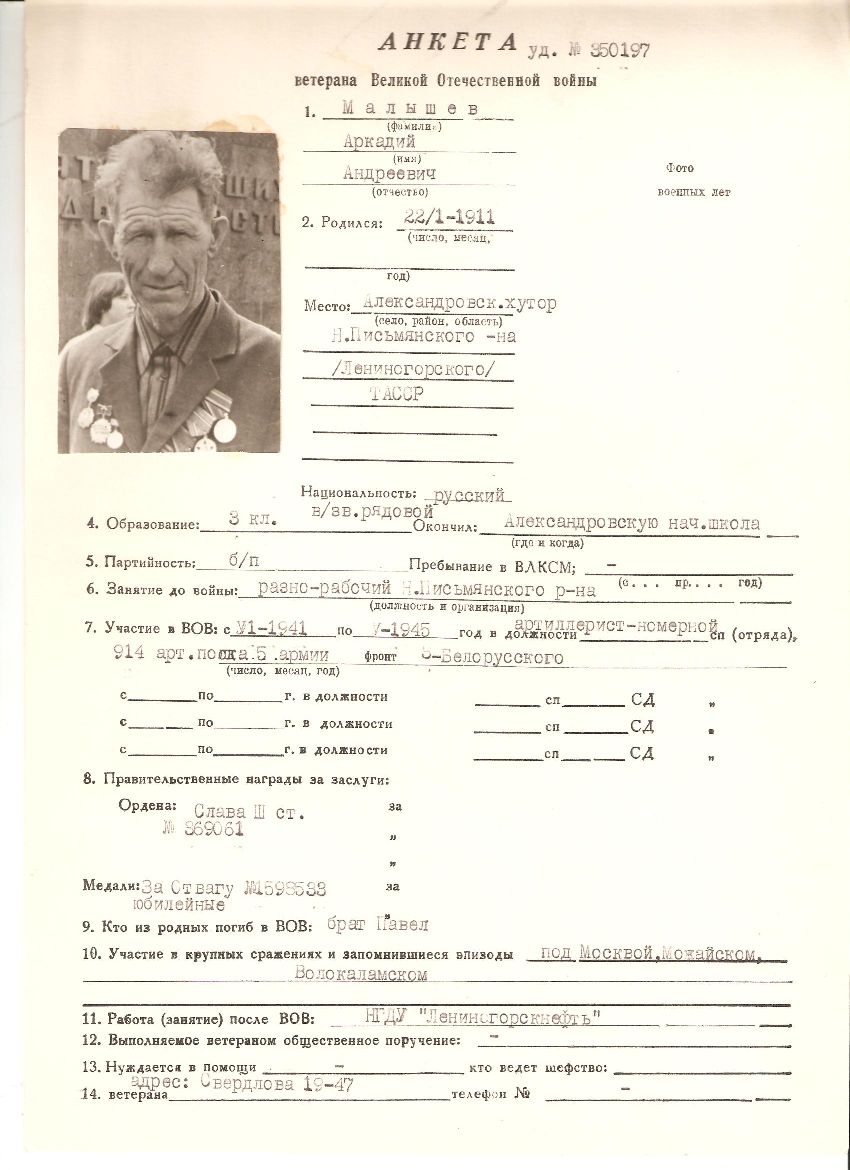 МАЛЫШЕВ АРКАДИЙ АНДРЕЕВИЧ