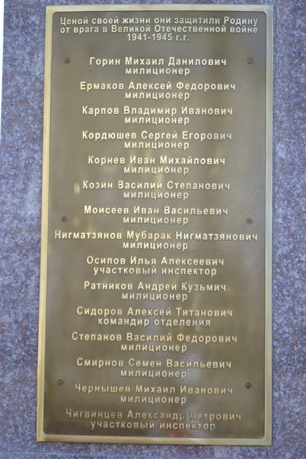 МЕМОРИАЛ ПАМЯТИ СОТРУДНИКОВ МВД, ПОГИБШИХ НА ФРОНТАХ В ГОДЫ ВЕЛИКОЙ ОТЕЧЕСТВЕННОЙ ВОЙНЫ И ПРИ ИСПОЛНЕНИИ СЛУЖЕБНЫХ ОБЯЗАННОСТЕЙ В МИРНОЕ ВРЕМЯ