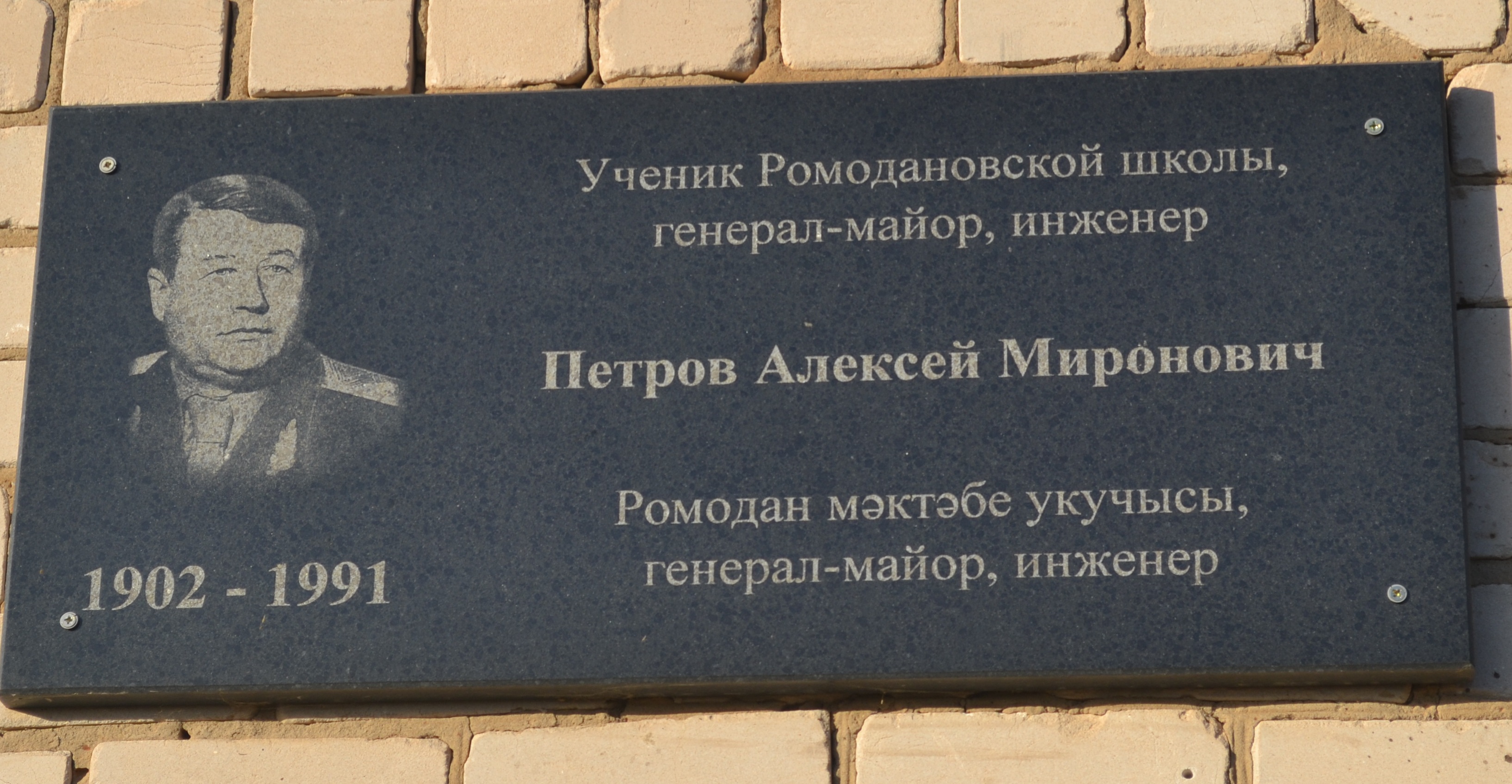 Мемориальная доска на здании Ромодановской средней школы в честь генерала А.М. Петрова