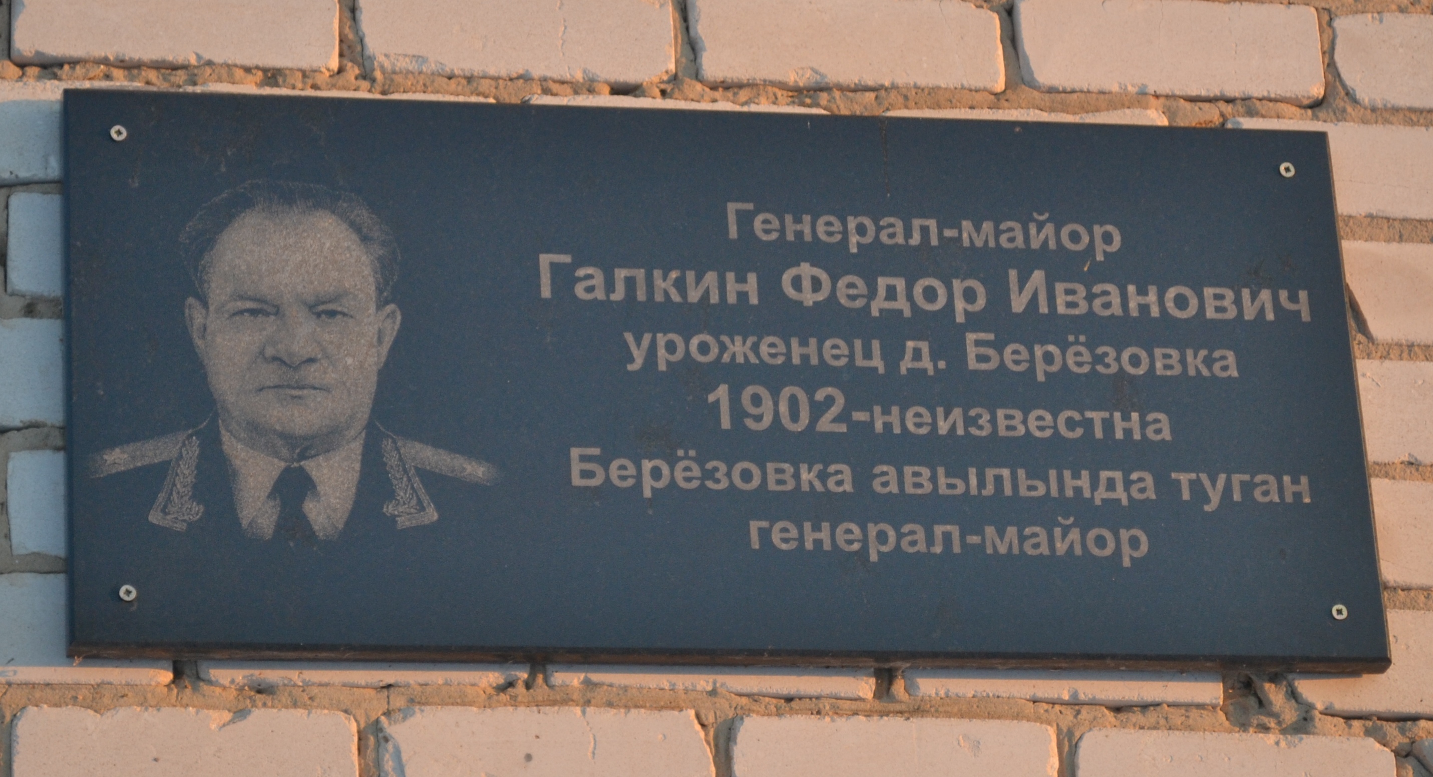 МЕМОРИАЛЬНАЯ ДОСКА В ПАМЯТЬ ГЕНЕРАЛ-МАЙОРА Ф.И. ГАЛКИНА