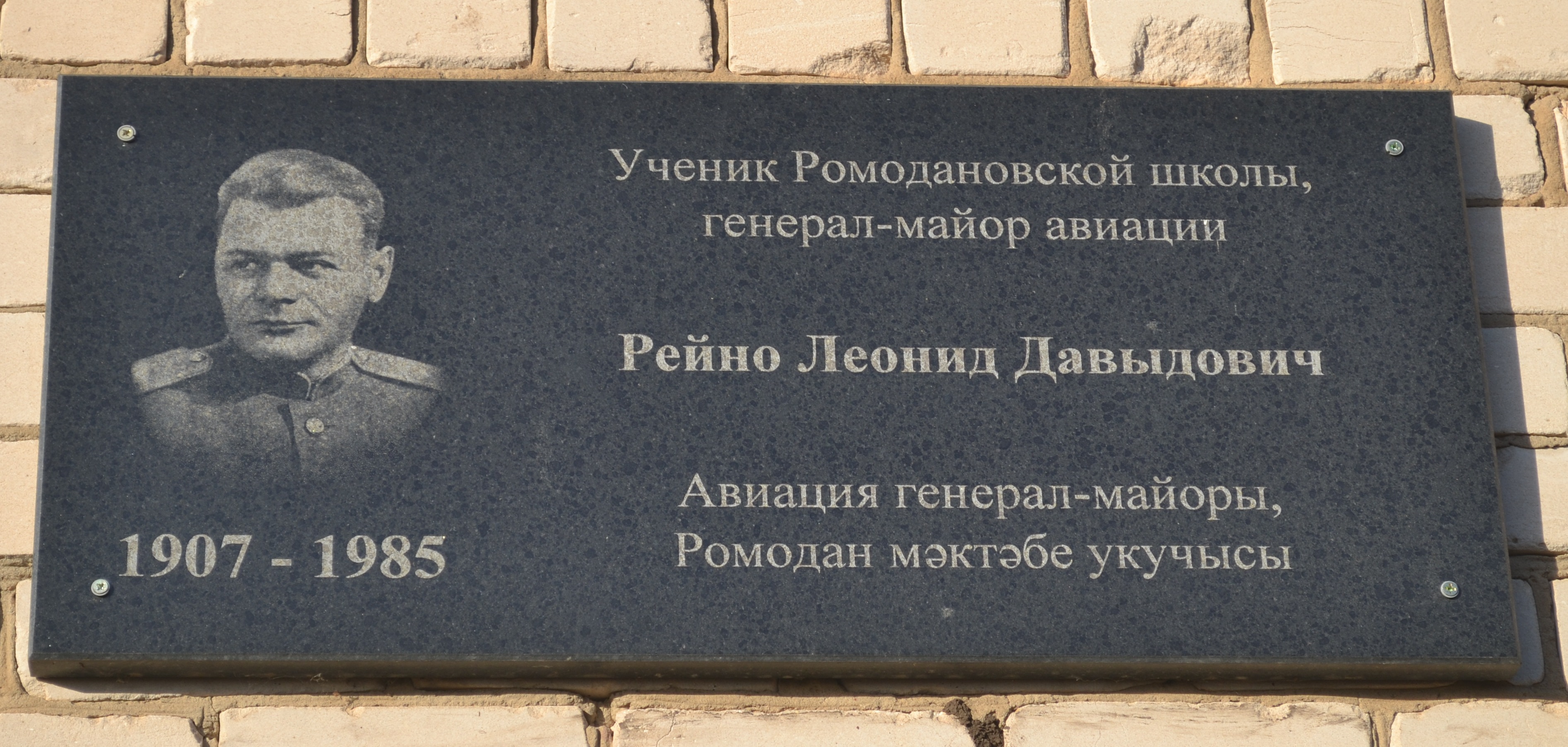МЕМОРИАЛЬНАЯ ДОСКА В ПАМЯТЬ ГЕНЕРАЛ-МАЙОРА Л.Д. РЕЙНО Район: АлексеевскийМемориальная доска на здании Ромодановской средней школы в честь генерала Л.Д. Рейно.Мемориалы Памяти Опубликовано 7 декабря, 2015 - 16:51 пользователем Осянин Владисла...
