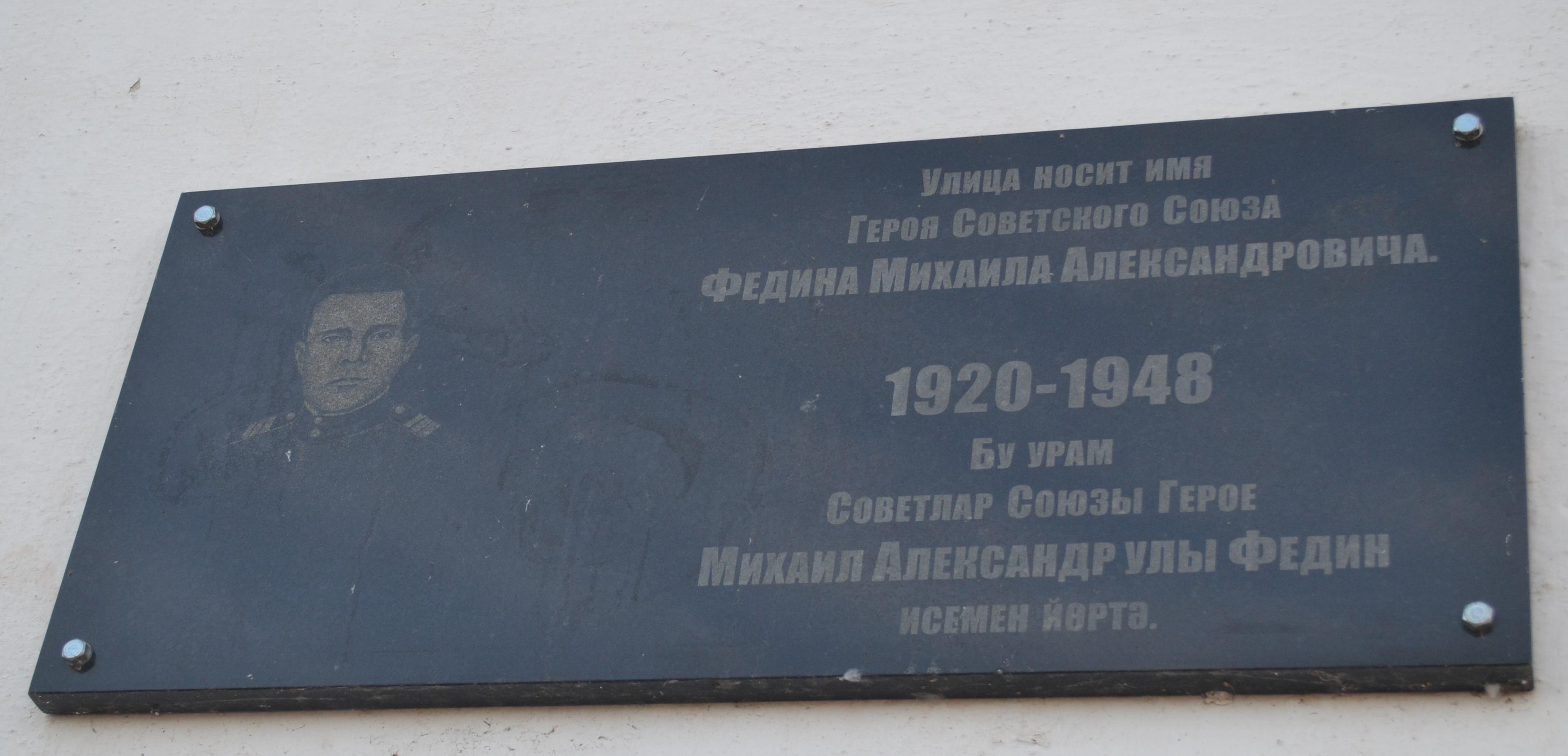 МЕМОРИАЛЬНАЯ ДОСКА В ПАМЯТЬ ГЕРОЯ СОВЕТСКОГО СОЮЗА М.А. ФЕДИНА