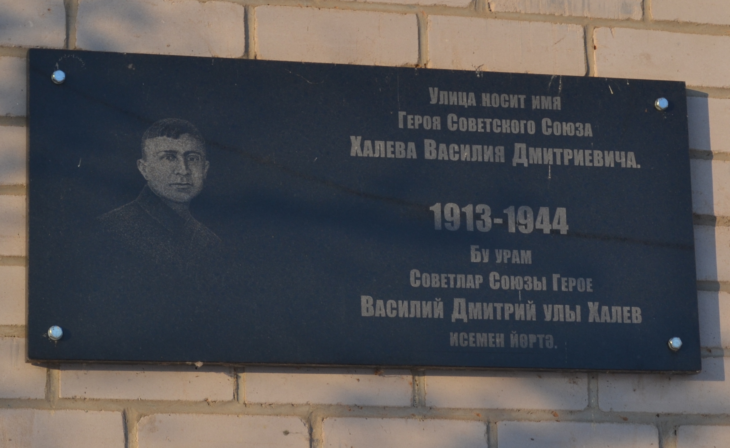 МЕМОРИАЛЬНАЯ ДОСКА В ПАМЯТЬ ГЕРОЯ СОВЕТСКОГО СОЮЗА В.Д. ХАЛЕВА Район: АлексеевскийИменем героя названы улицы в с. Алексеевское и г. Казани.Мемориалы Памяти Опубликовано 8 декабря, 2015 - 09:42 пользователем Осянин Владисла...