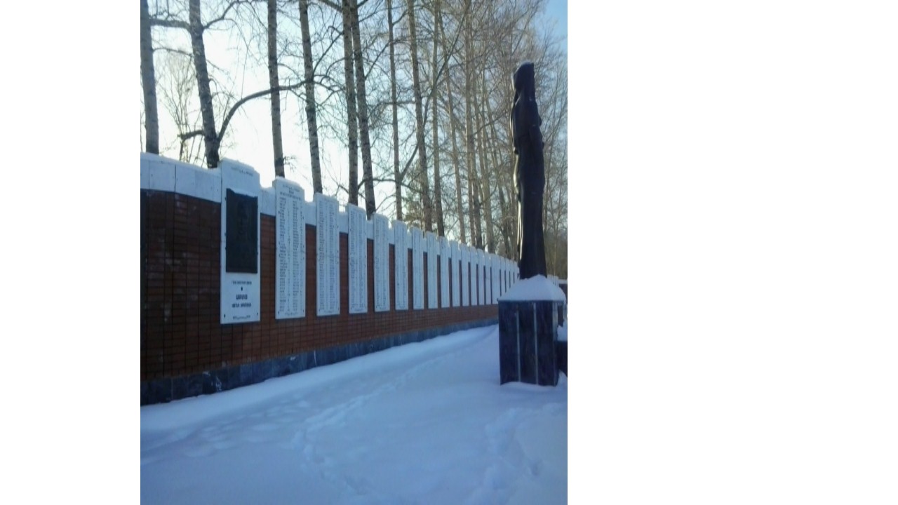 1. Наименование объекта: Мемориальный комплекс «Слава павшим в Великой Отечественной войне». Мемориальная стена с фамилиями и инициалами погибших участников Великой Отечественной войне.