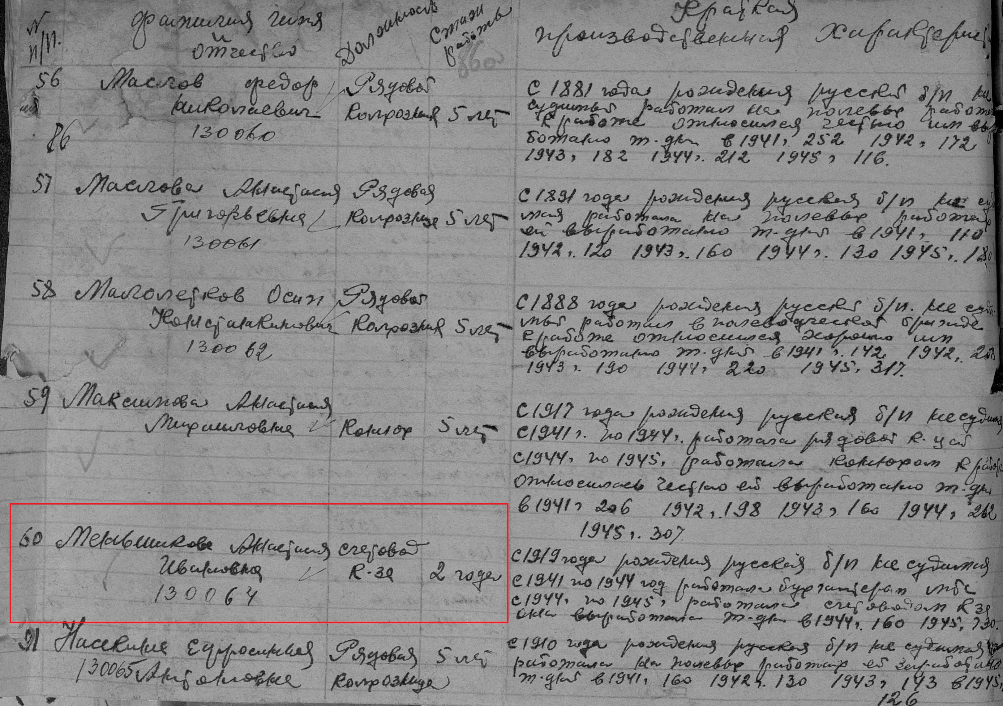 Меньшикова Анастасия Ивановна родилась в 1919 году в с.Сл.Черемуховая Казанской губернии Чистопольского уезда Новошешминской волости. В годы Великой Отечественной войны работала в колхозе "8-е Марта" колхозницей. Награждена медалью "За доблестный труд в Великой Отечественной войне 1941–1945 гг." (Акт от 28 апреля 1947г., фонд 3610, опись 2, дело 325, лист 86, № 130064).