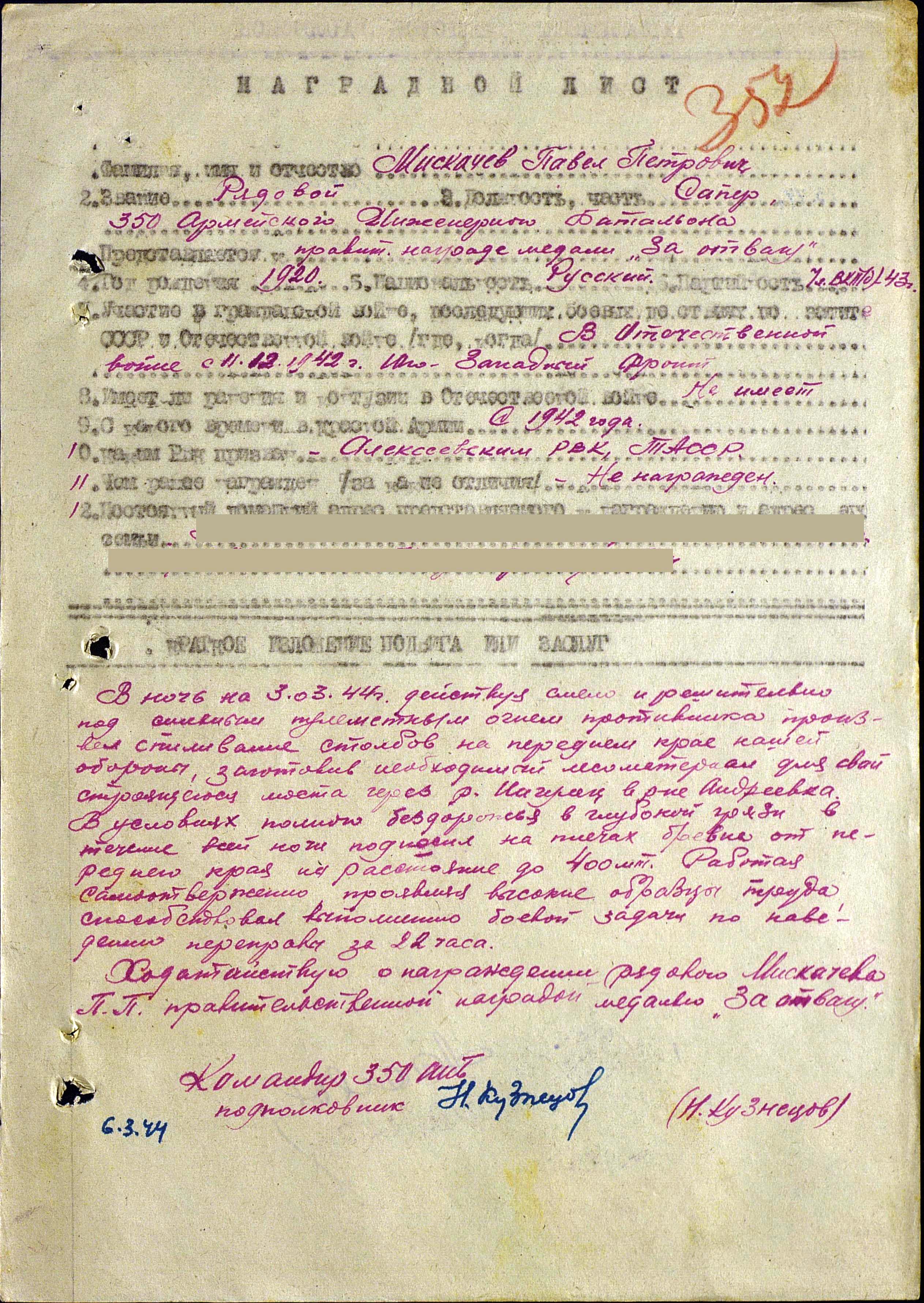 МИСКАЧЁВ Павел Петрович, (1920-2015, с. Балахчино). В Красной Армии - с 1942 г., мобилизован Алексеевским РВК. Красноармеец, 350 армейский инж. батальон 8 гв. Армия, сапёр. Воевал на Западном, 3 Укр. фронте, в Молдавии. Тяж. ранен в 1944г. и в том же году демобилизован. Награждён орденом Отеч. войны 1 ст. (1985), медалью «За боевые заслуги» (1944), знаком «Отличный сапёр». После войны работал в Балахчинской школе учителем.