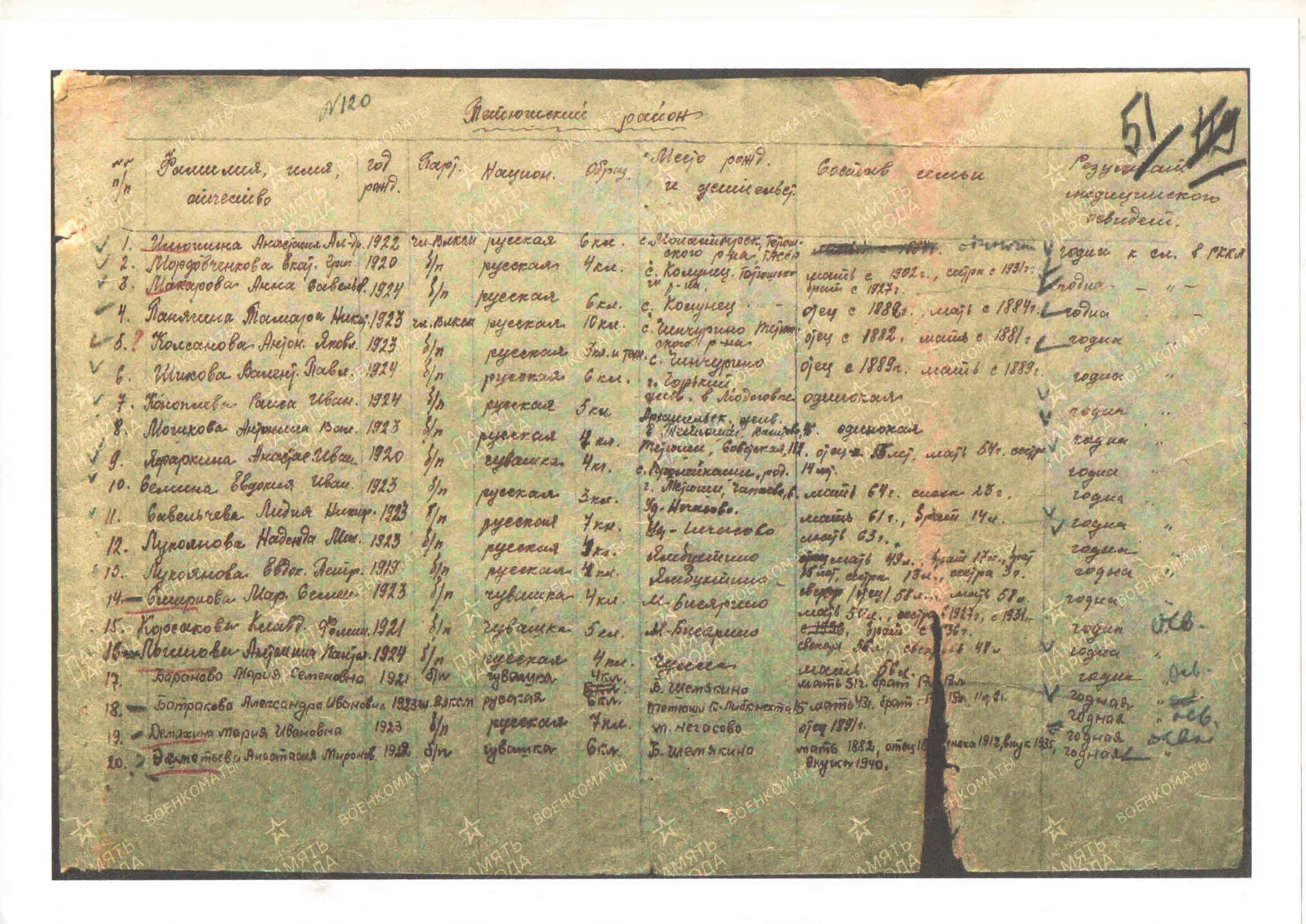 Мочалова Евдокия Петровна родилась в 1919 году в селе Ямбухтино Тетюшского района Татарской АССР в многодетной семье, в которой росли семь детей.