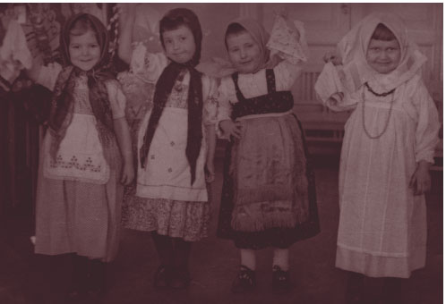Итак, Казань, тыл, детский сад, который имел свою историю: первый в Казани, основанный А. Самойловой — женой профессора, известного физиолога А.Ф. Самойлова. В этот детский сад в свое время ходили мои мама и дядя, а в годы войны — я и несколько детей сотрудников музея. Не случайно это отмечаю: дело в том, что перед войной в музее должна была открыться выставка детской игрушки, и ряд экспонатов несостоявшейся из-за начала войны выставки передали в детский сад. Несмотря на войну, в городе, дома, в детском саду устраивали для детей елки. Папа организовывал елки для детей сотрудников музея в своем кабинете. Также делали подарки с выставки — мне подарен был кукольный двухтумбовый стол, как настоящий. Так «повенчали меня» с этим «станком» на всю дальнейшую жизнь. А вот Гуле Ишмуратовой, с которой мы были не только в детсаду, но и в университете в одной группе, — настоящие стол, стульчик и диванчик. И еще одно — нас в детсаду и в музее фотографировали. С одной фотосессией и связано это событие. Я была выдумщицей и очень инициативной — однажды сказала, что завтра придет фотограф, все должны быть нарядными. На утро воспитатели были удивлены. Позвонили папе. Любящий папочка выручил — прислал фотографа. Эти фото также напоминают детство, выхватывают из памяти какие-то «картинки». Вот прихожу в садик, мне говорят: «Светочка, какая же ты нарядная». Со слезами в голосе отвечаю: «Да это из рустемкиных брюк сшили и бабушкиной кофточки». Преодоление этих трудностей сказалось на бережном, трепетном отношении к вещам. Да, долгое время и после войны перешивали, комбинировали, но старались одеть ребенка получше.