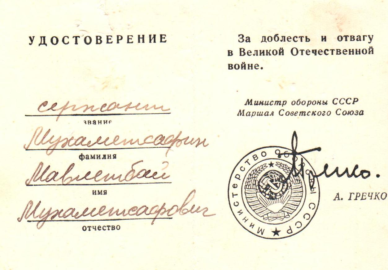 МУХАМЕТСАФИН МАВЛЕТБАЙ МУХАМЕТСАФИНОВИЧ